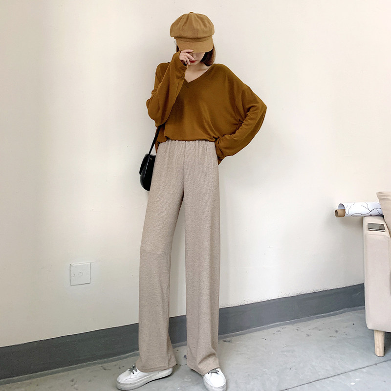 Трикотажные демисезонные штаны, леггинсы для отдыха, 2020, высокая талия, оверсайз, свободный прямой крой, по фигуре