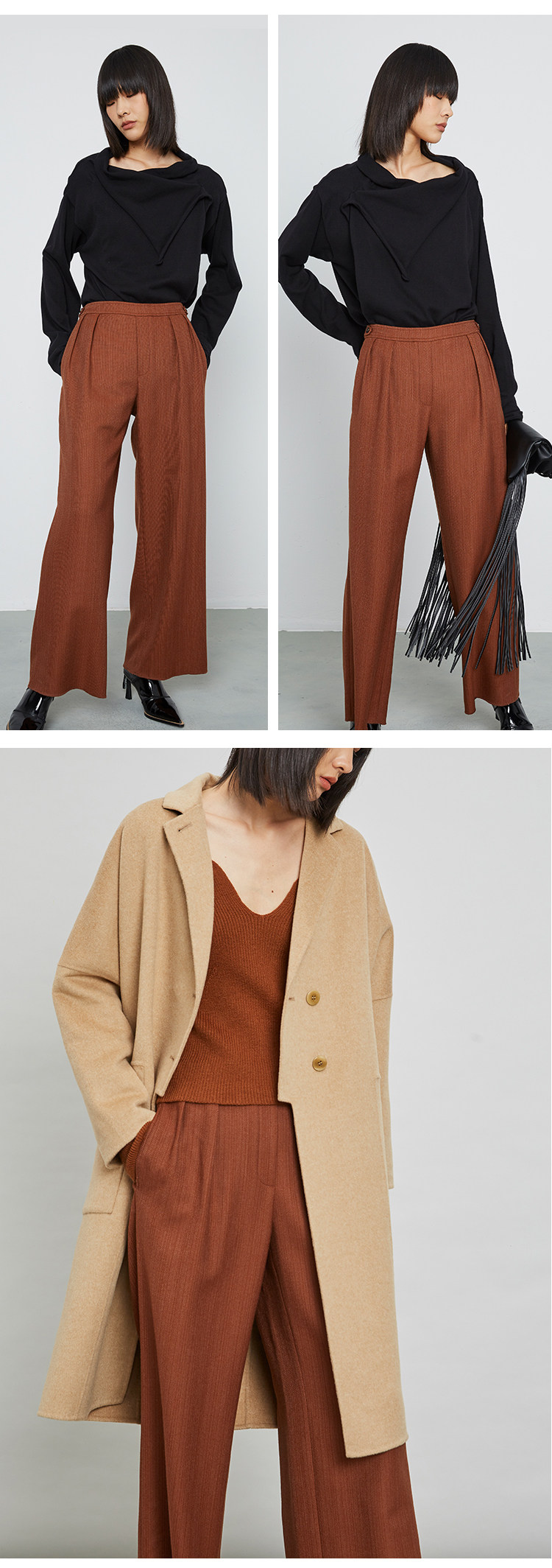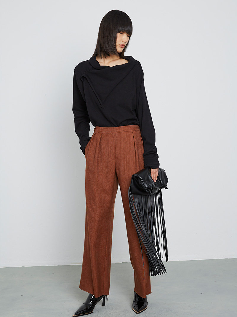 Осенние штаны, дизайнерский костюм, высокая талия, свободный прямой крой, тренд сезона