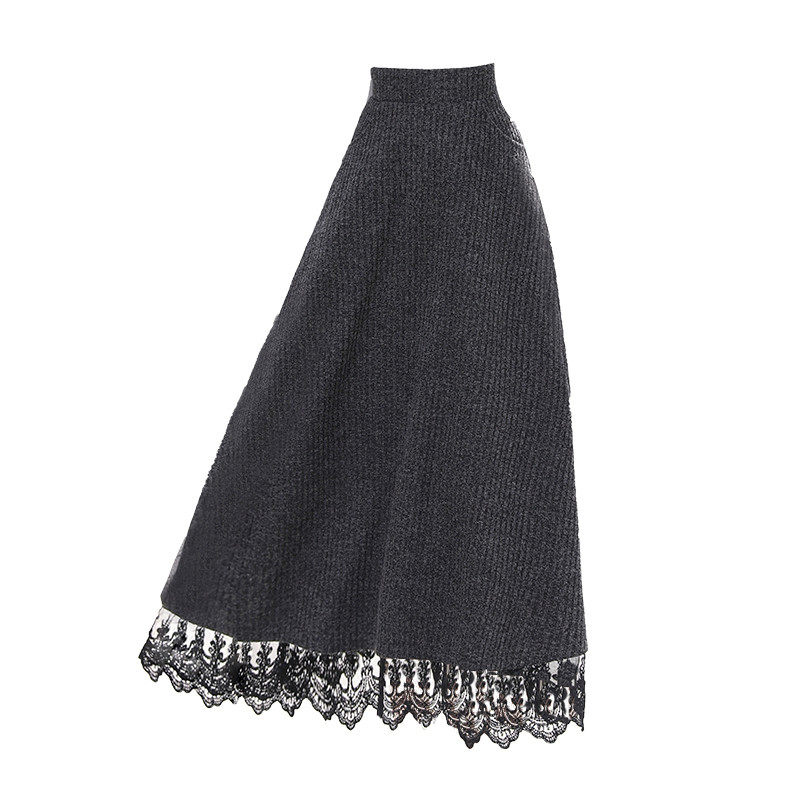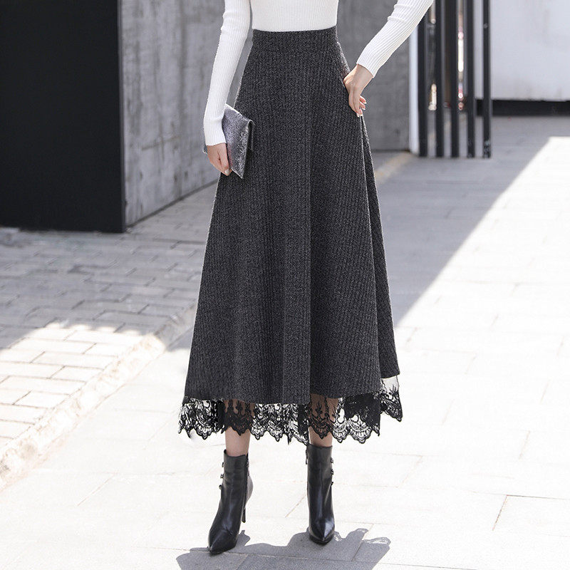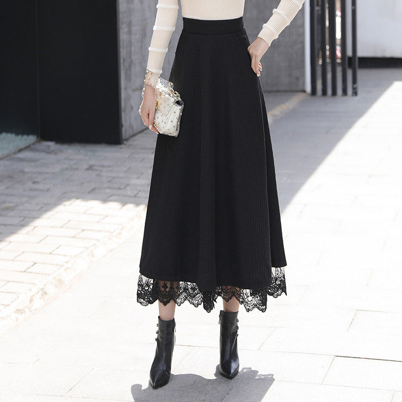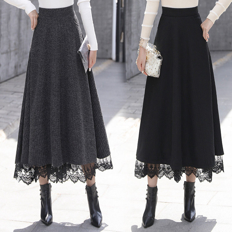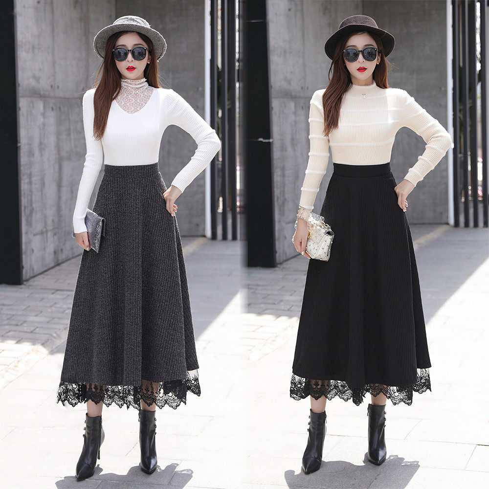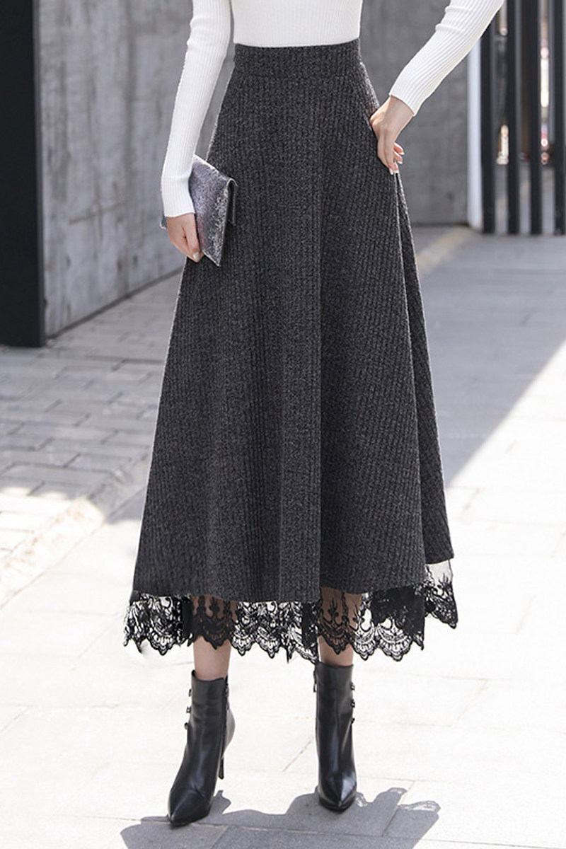 Осенняя ретро длинная кружевная шерстяная юбка, высокая талия, оверсайз, А-силуэт, длина миди