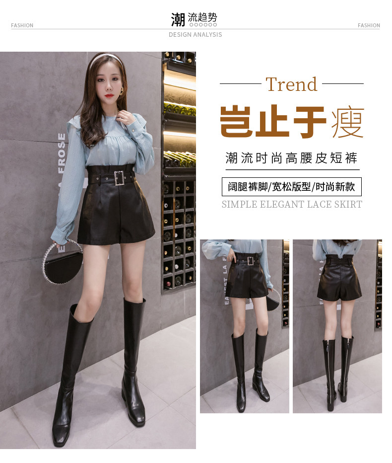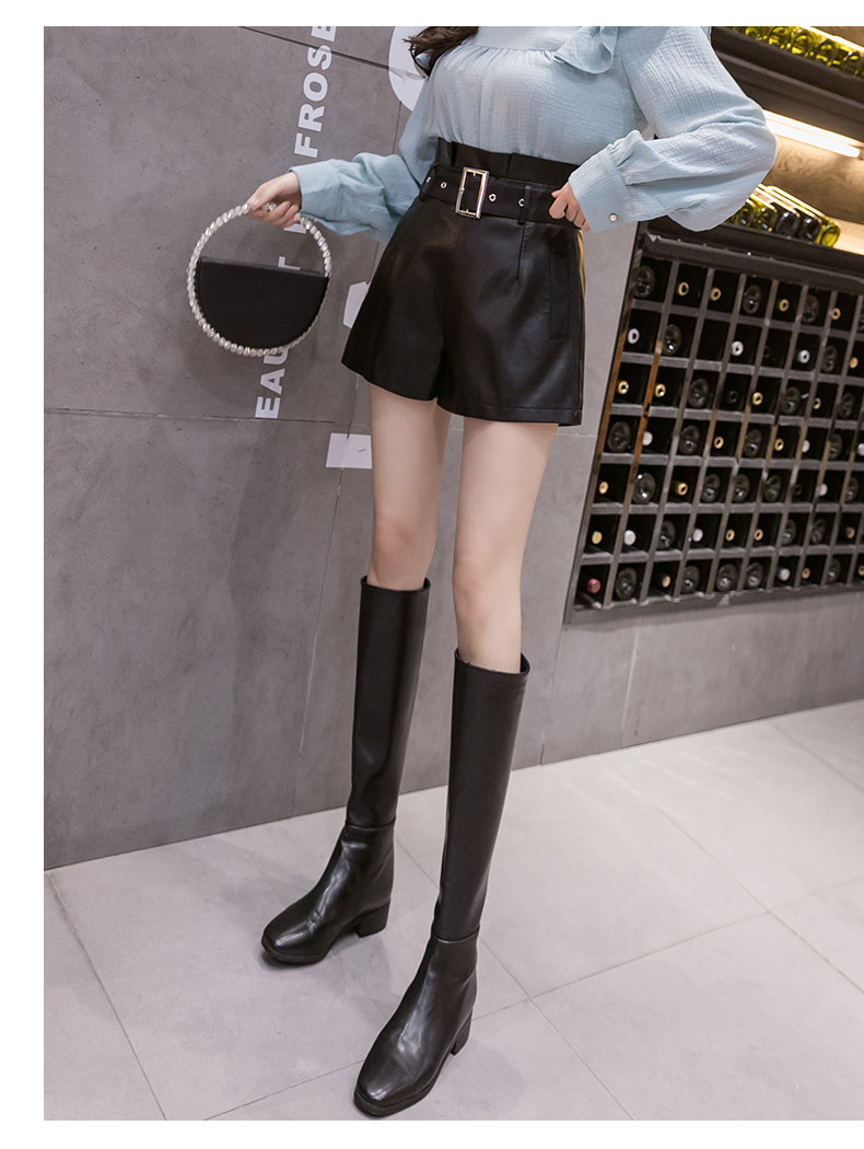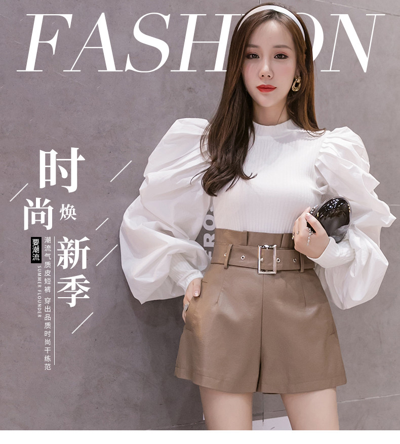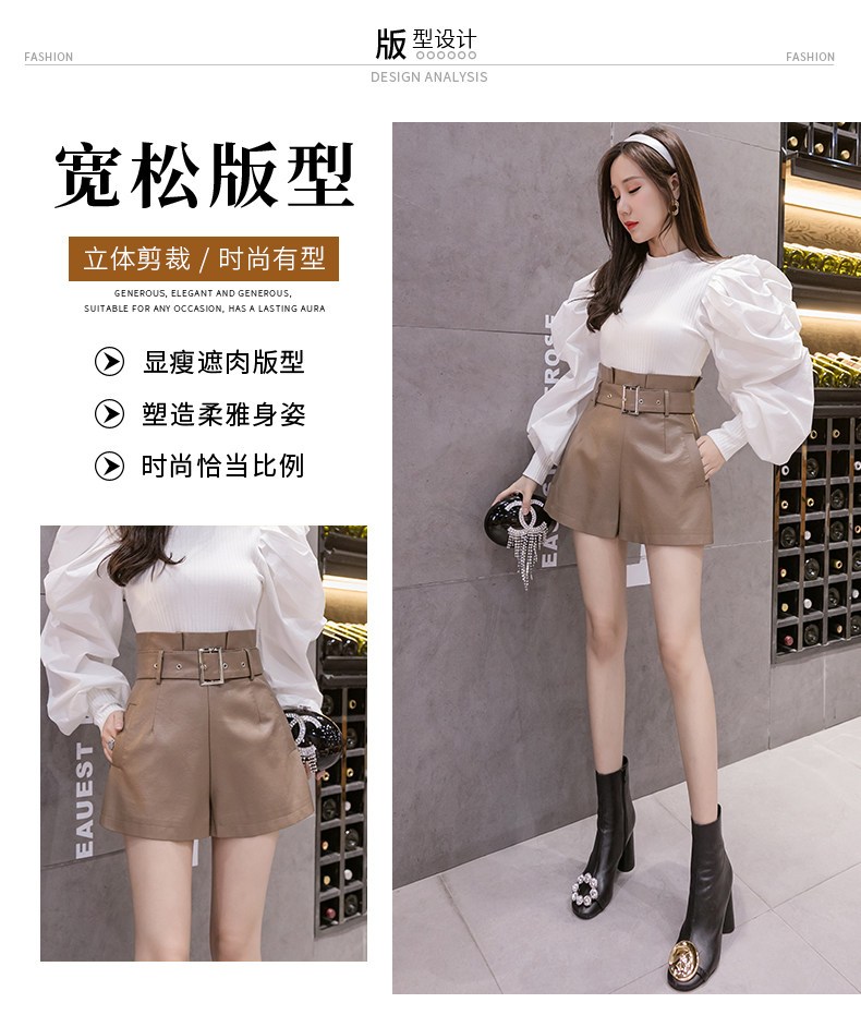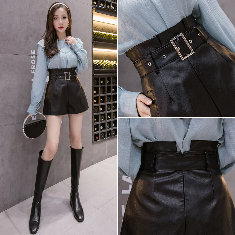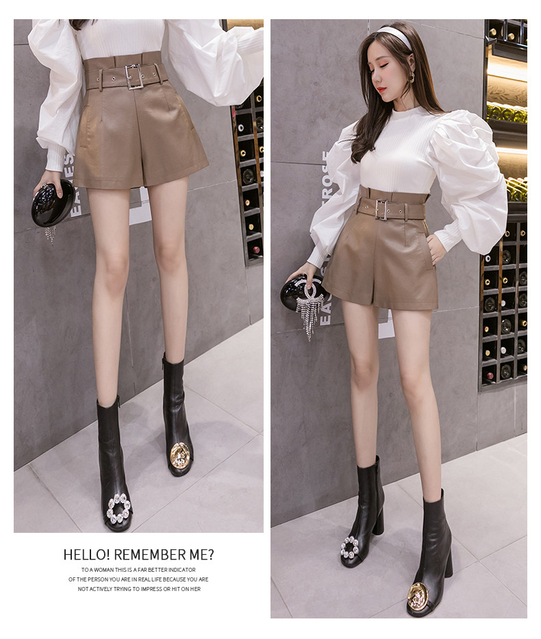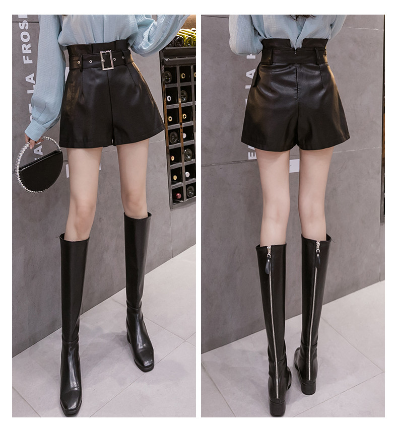 Полиуретановые осенние шорты, штаны, коллекция 2023, высокая талия