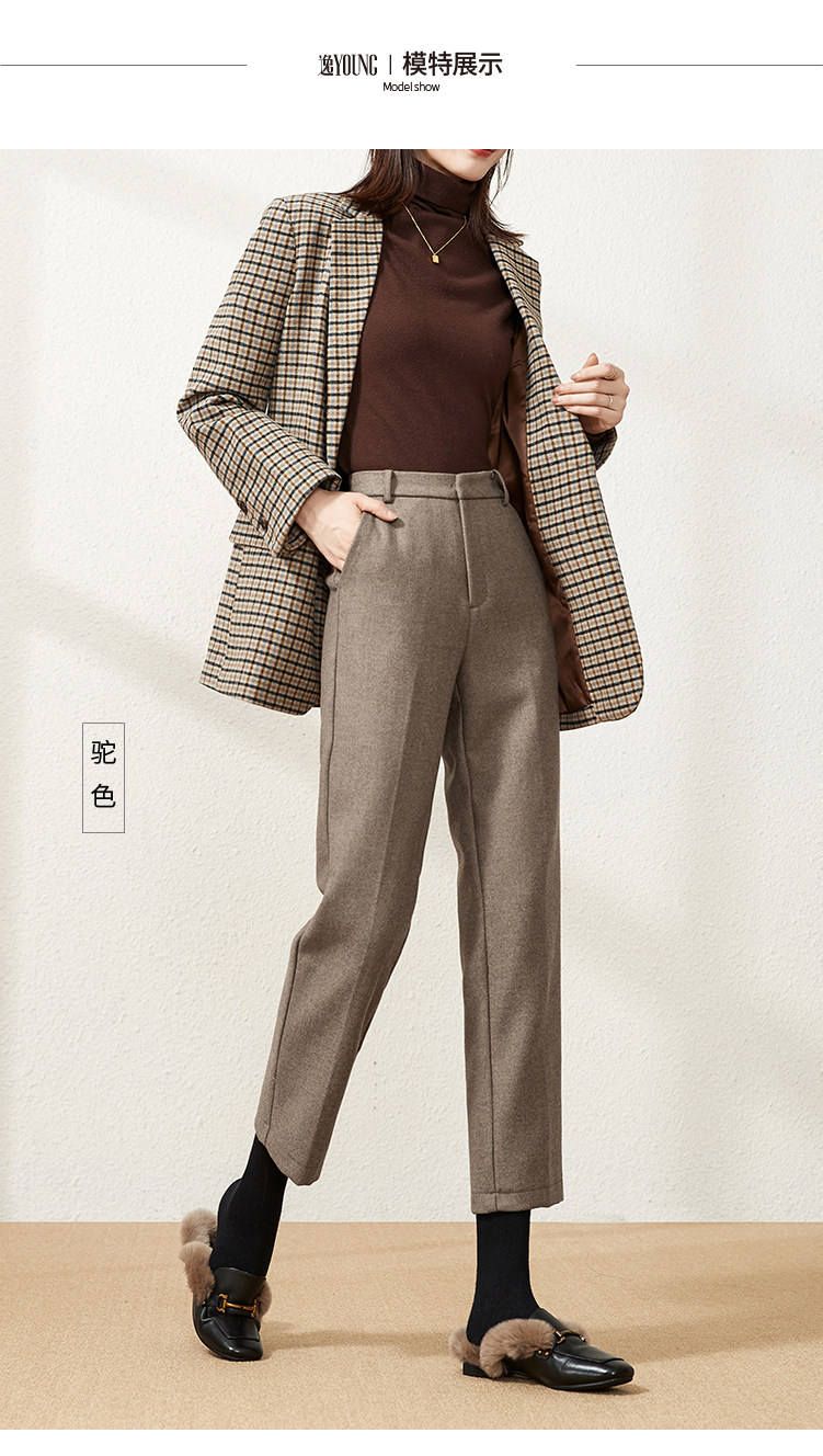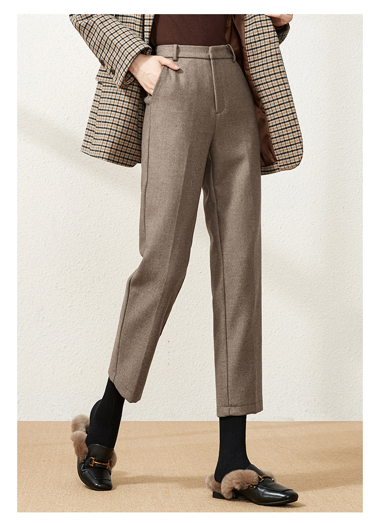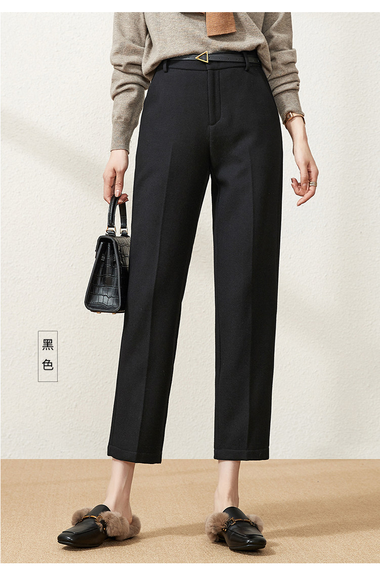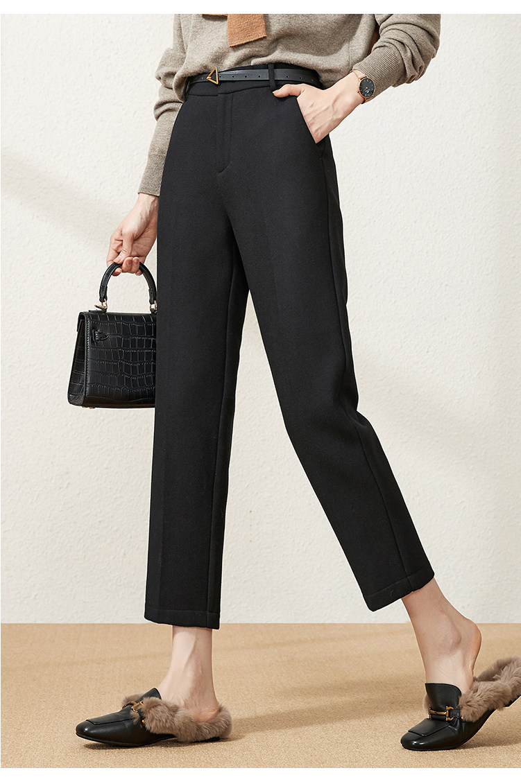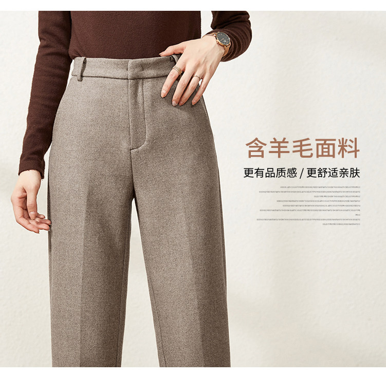 Шерстяные демисезонные приталенные штаны, 2020, высокая талия, свободный прямой крой