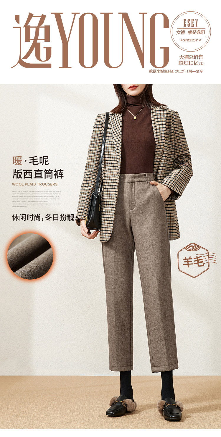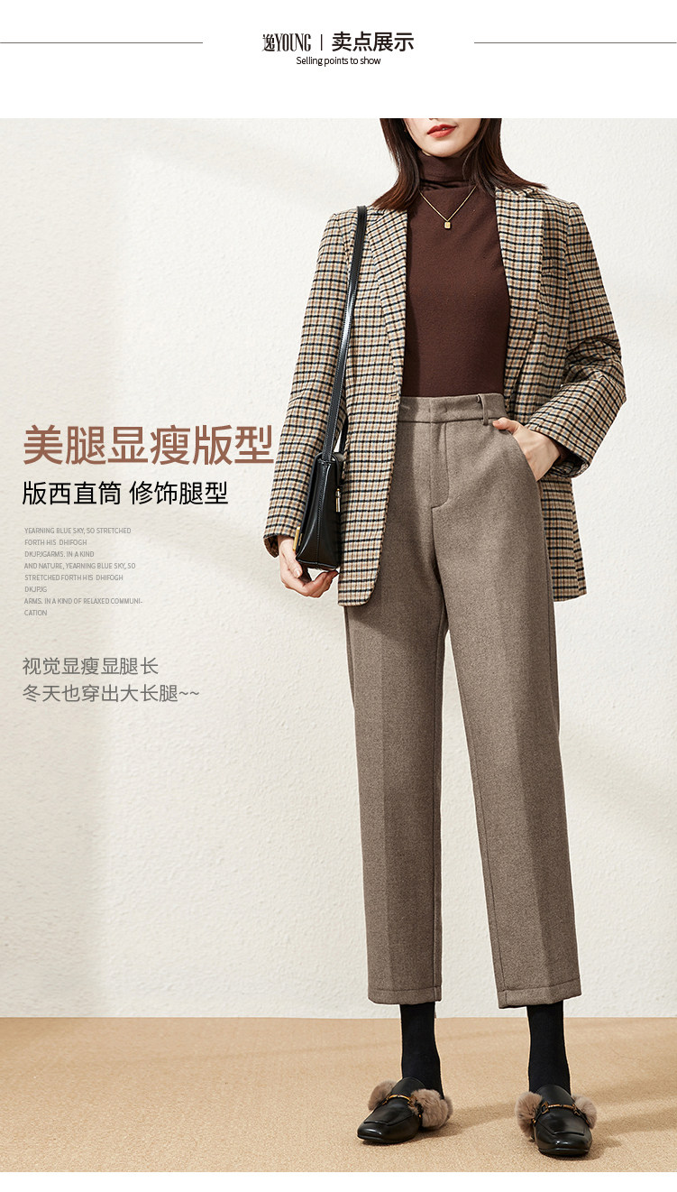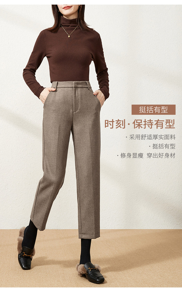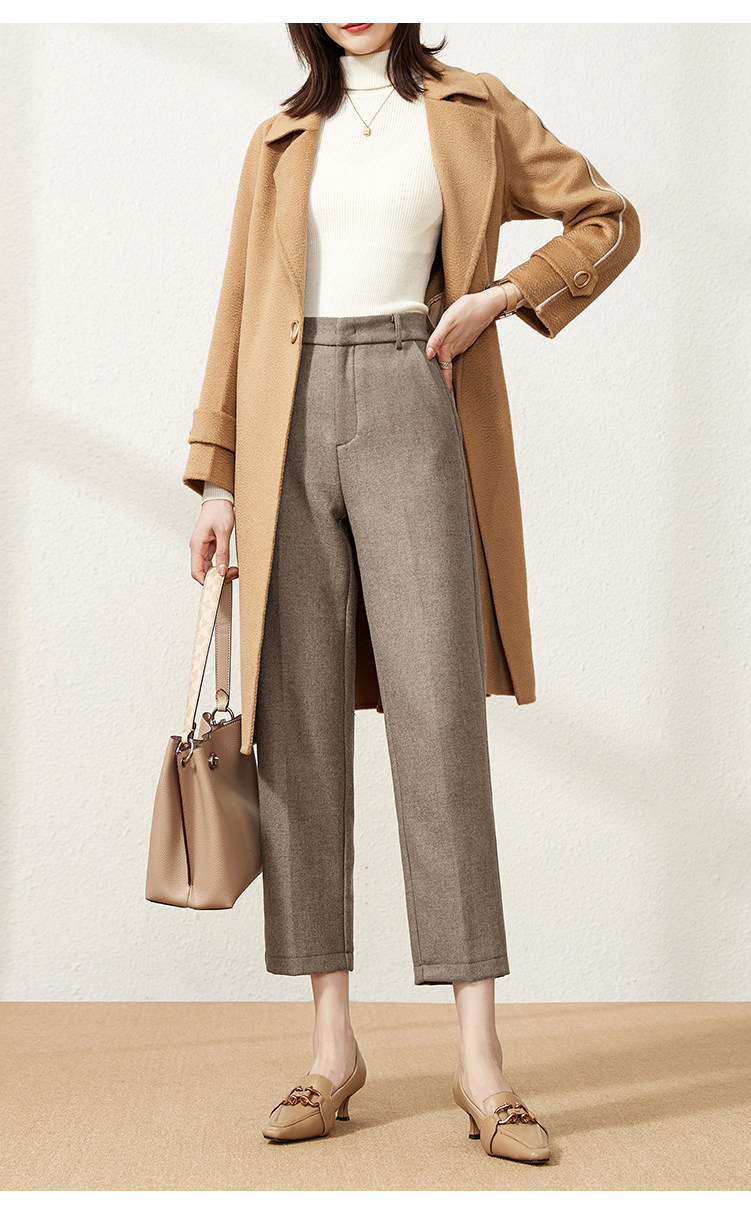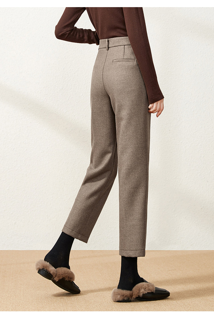 Шерстяные демисезонные приталенные штаны, 2020, высокая талия, свободный прямой крой