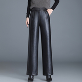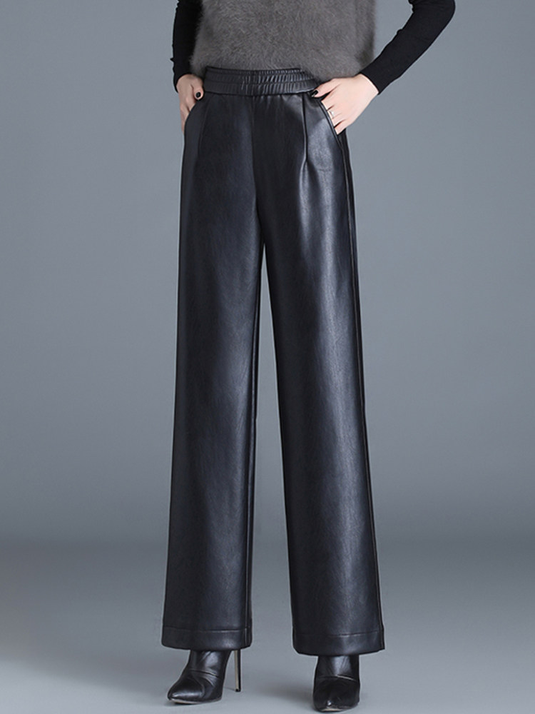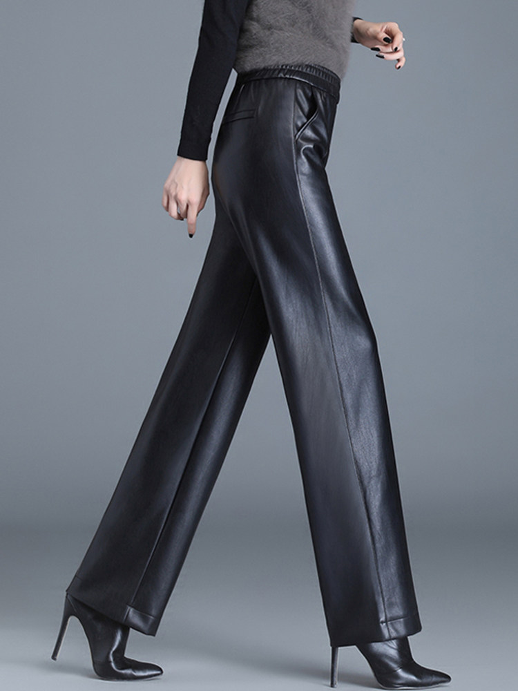 Демисезонные штаны, из натуральной кожи, высокая талия, по фигуре