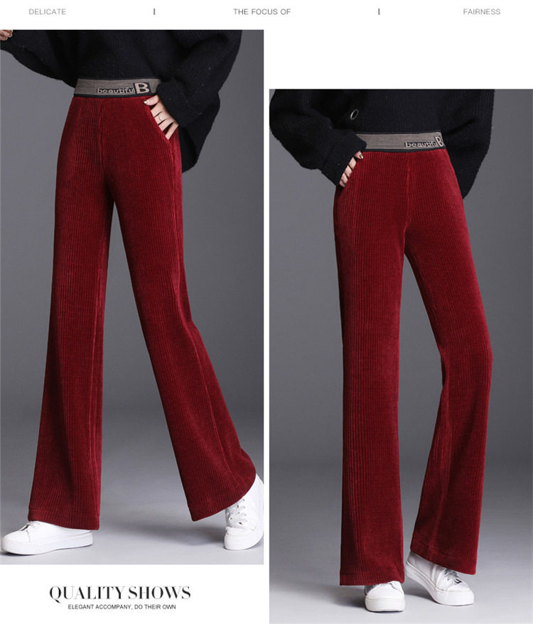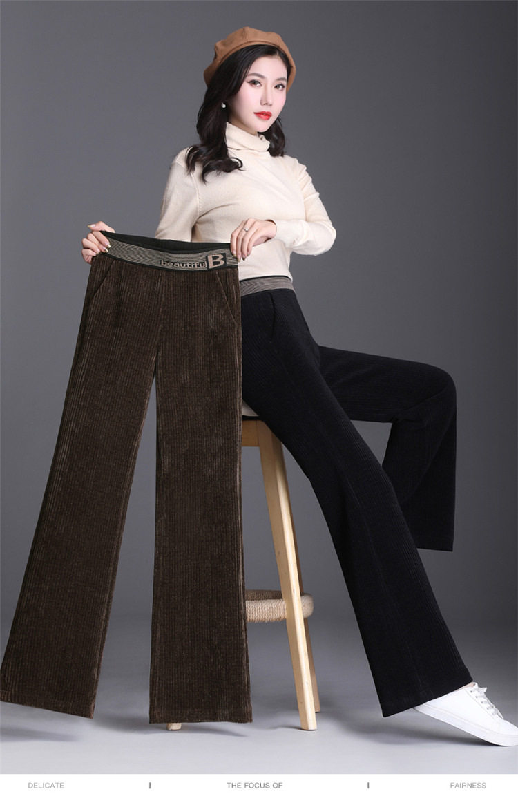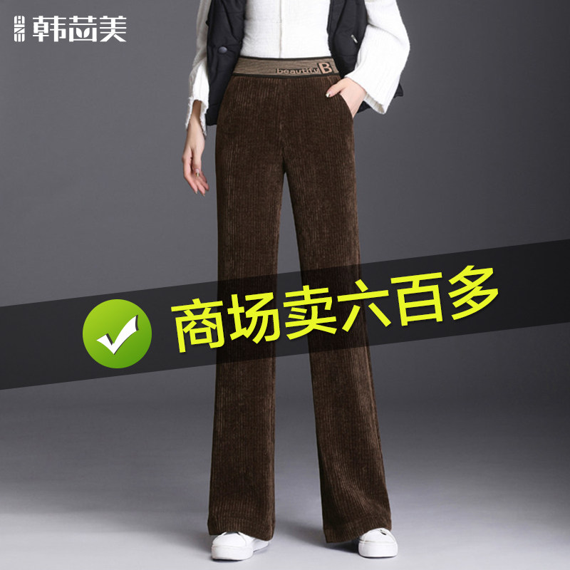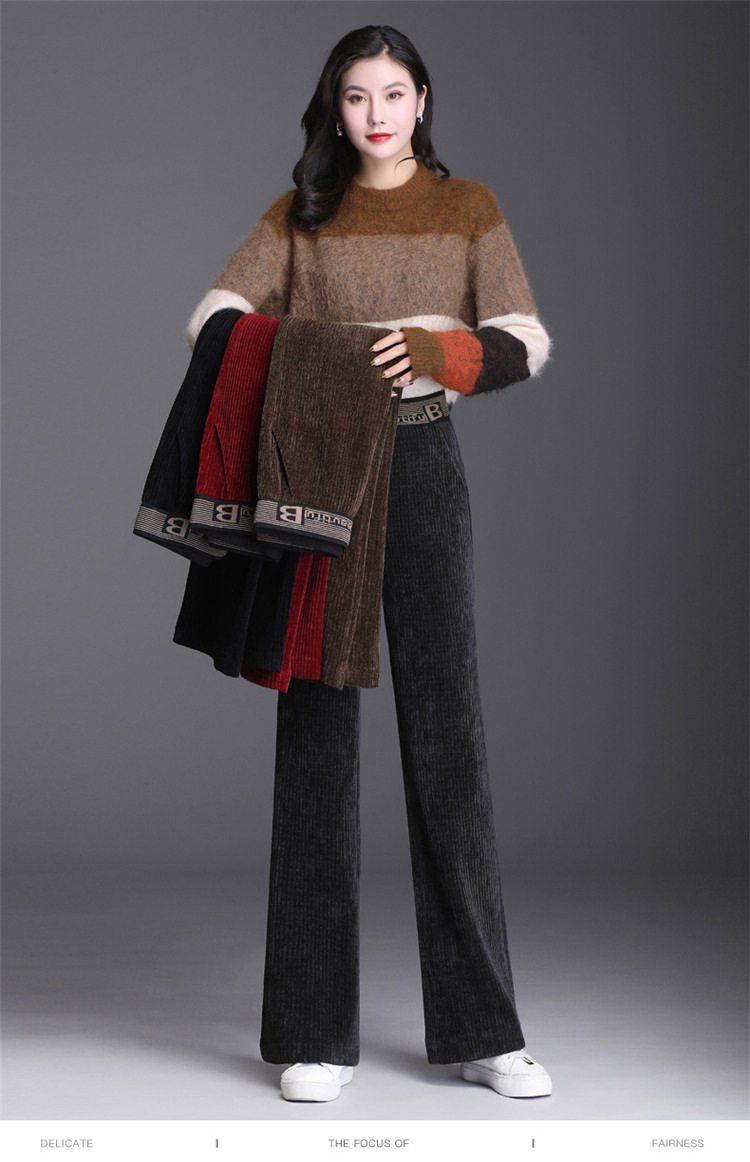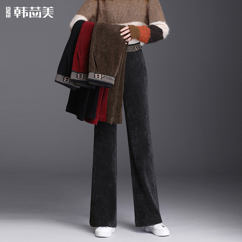 Бархатные осенние вельветовые штаны, коллекция 2021, высокая талия, свободный прямой крой