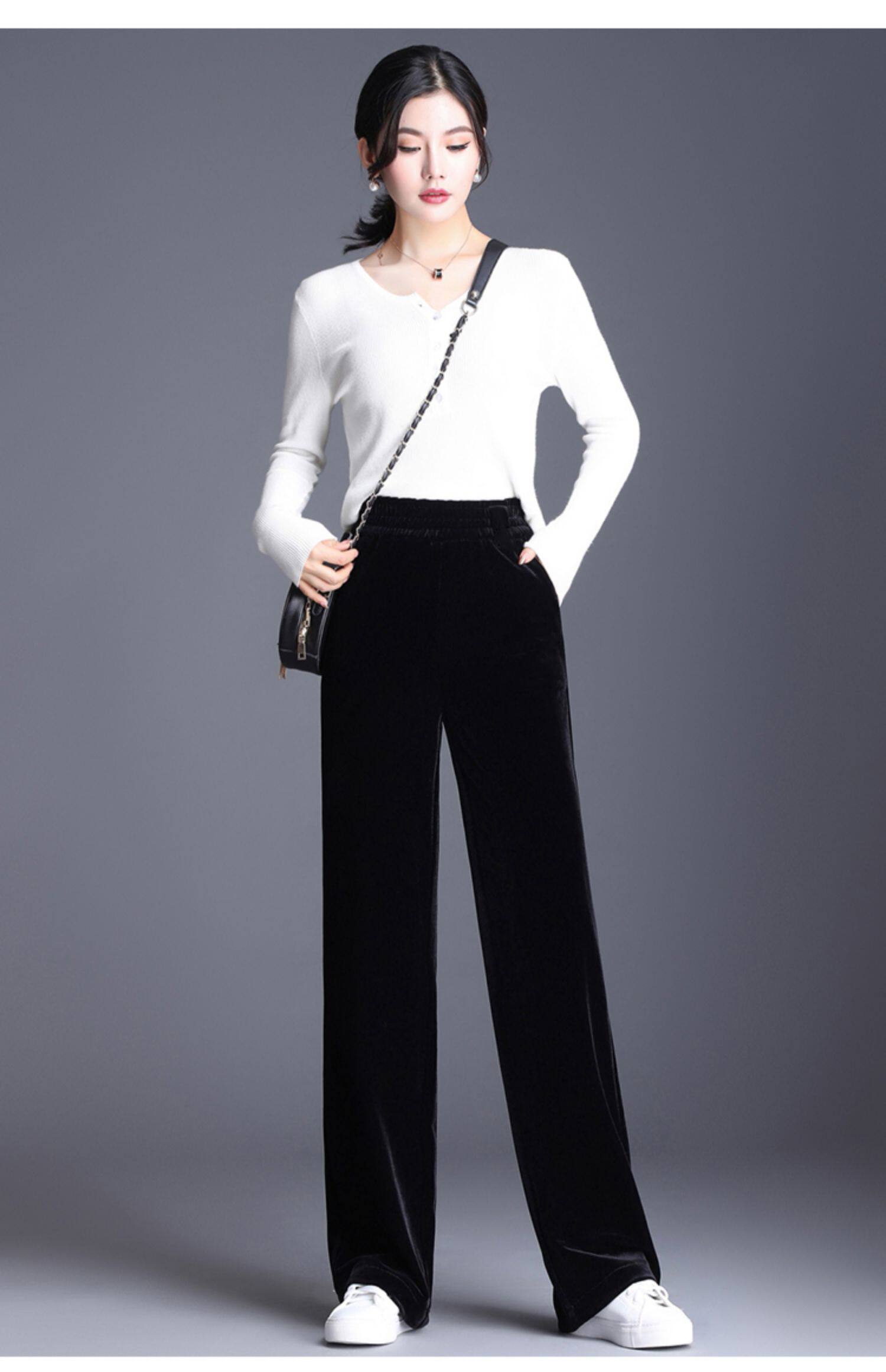 Бархатные демисезонные утепленные штаны, леггинсы, высокая талия, свободный прямой крой, коллекция 2023