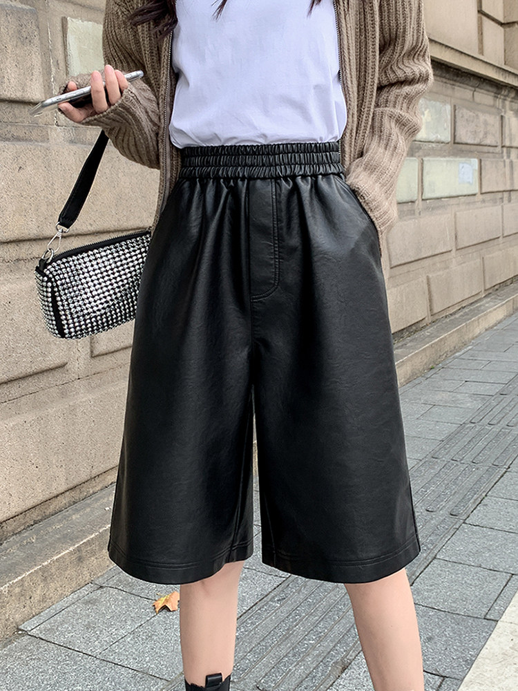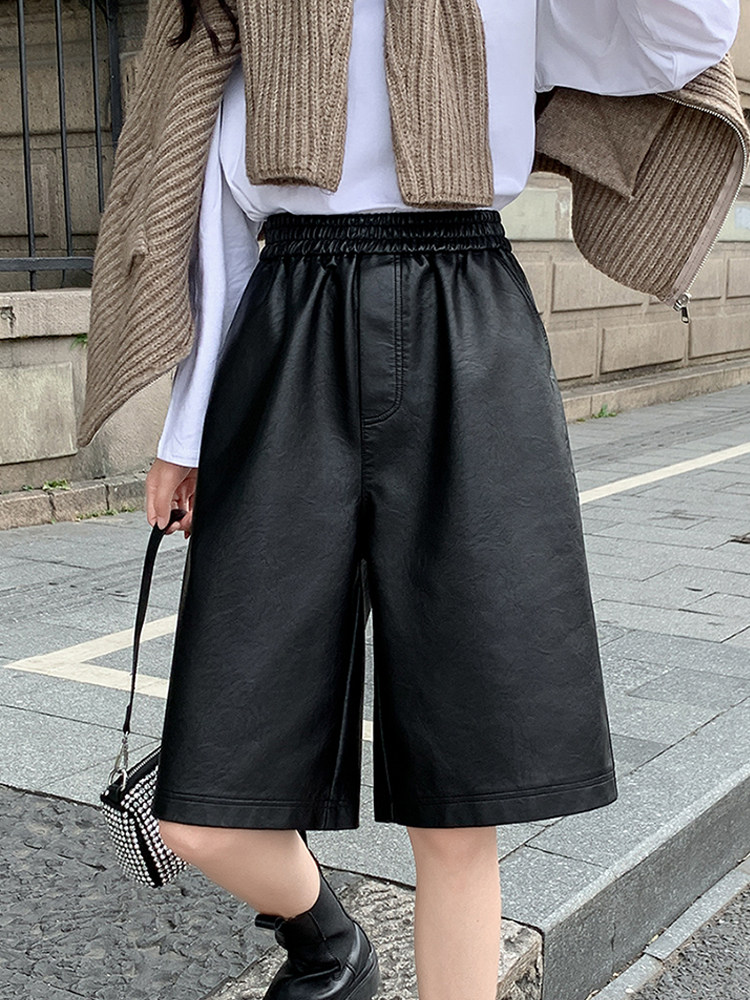 Осенние шорты, черные штаны для отдыха, коллекция 2023, свободный прямой крой, А-силуэт
