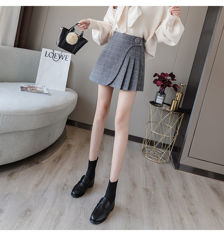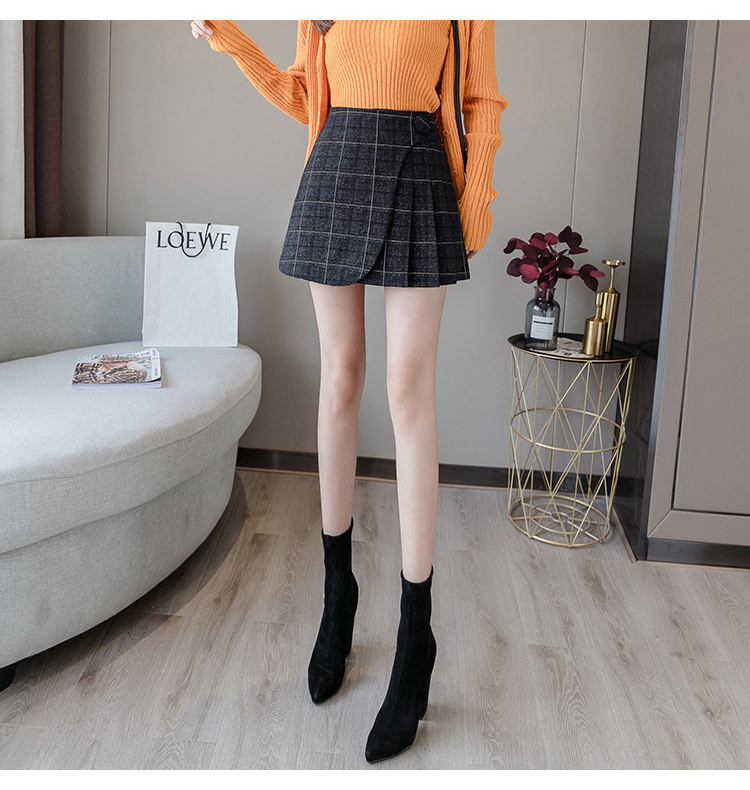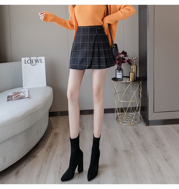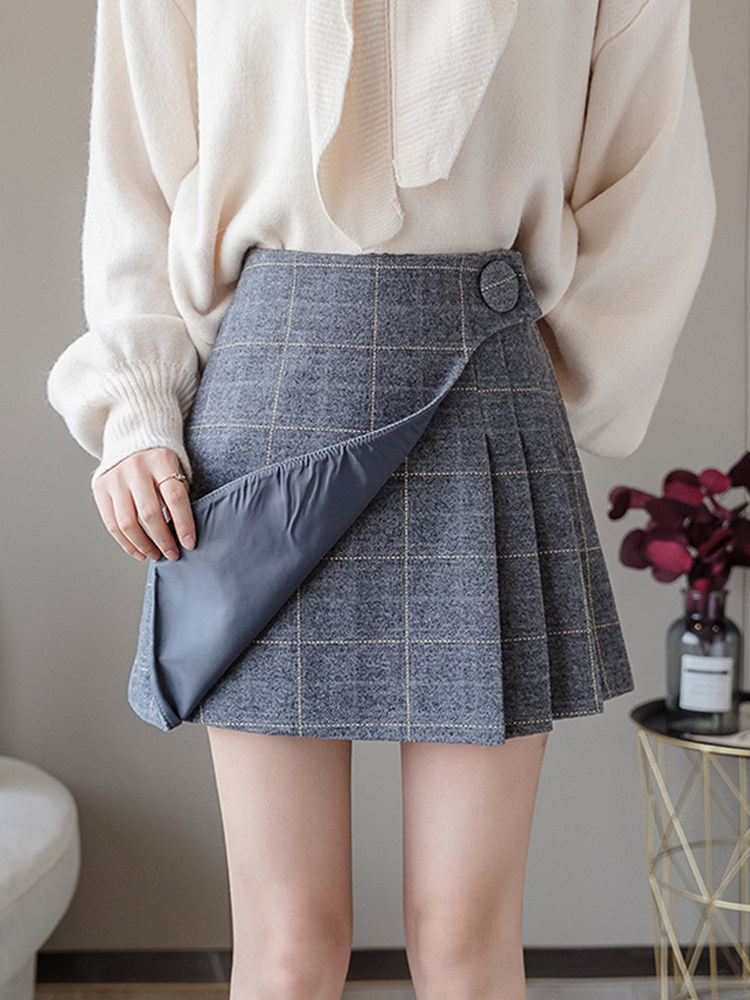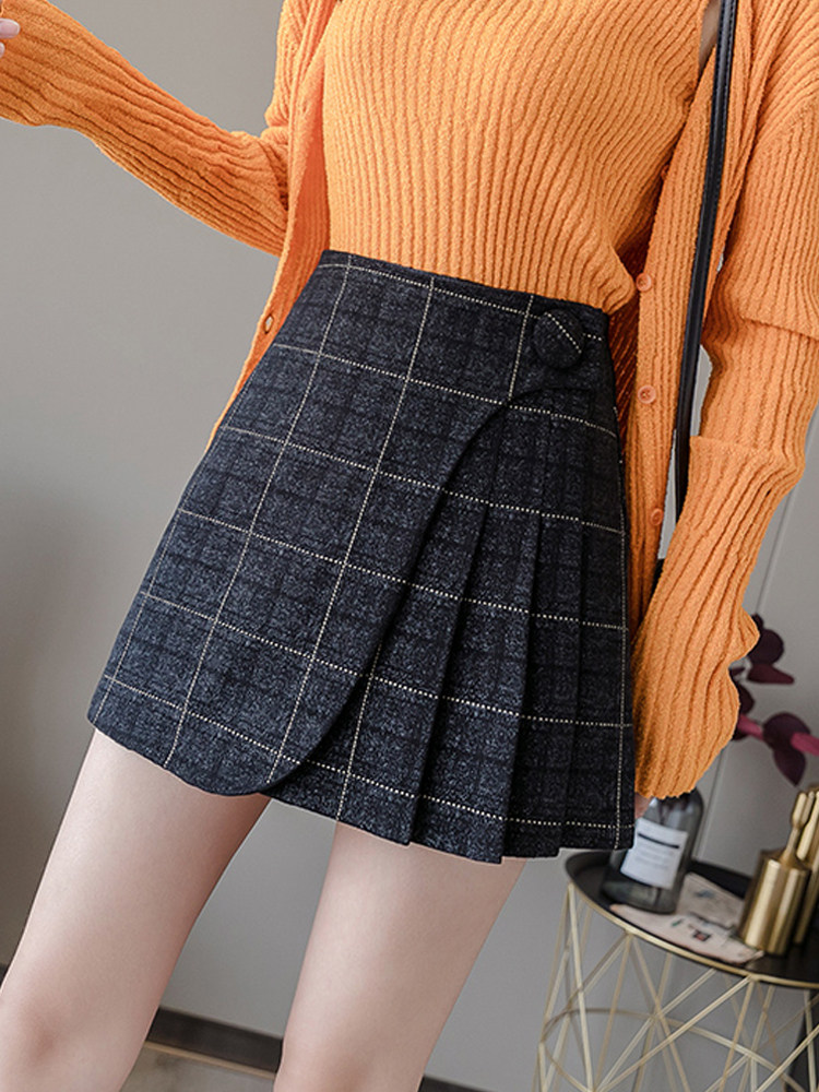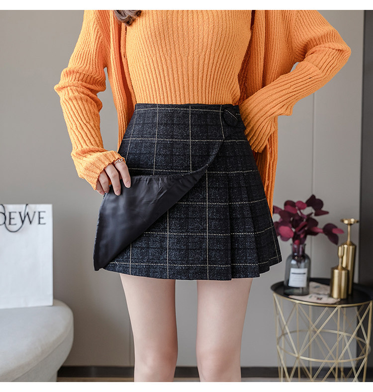 Шерстяная демисезонная юбка в складку, мини-юбка, приталенное клетчатое защитное белье, высокая талия, А-силуэт, увеличенная толщина