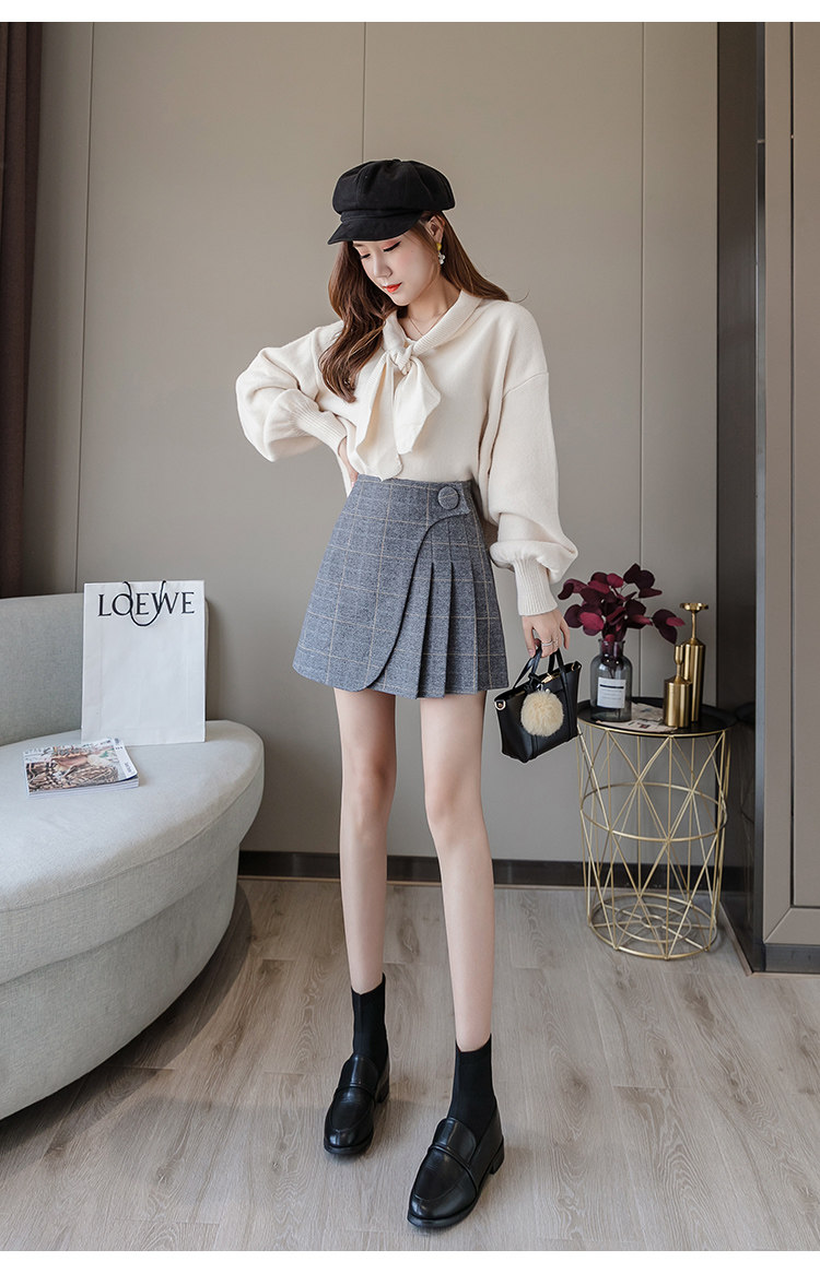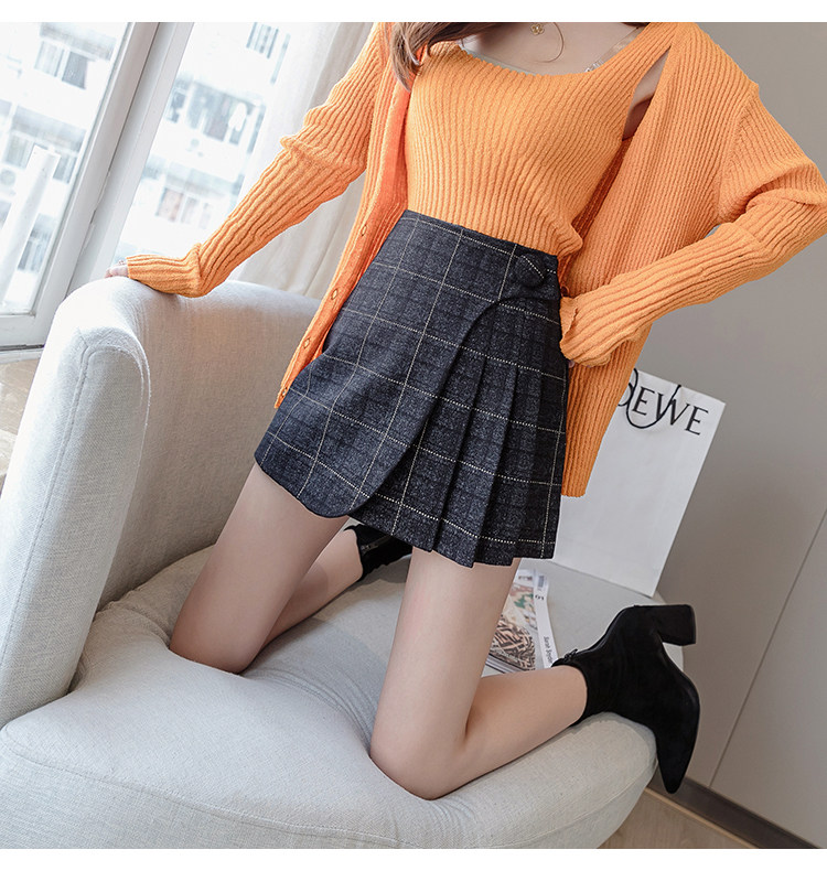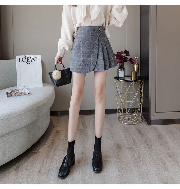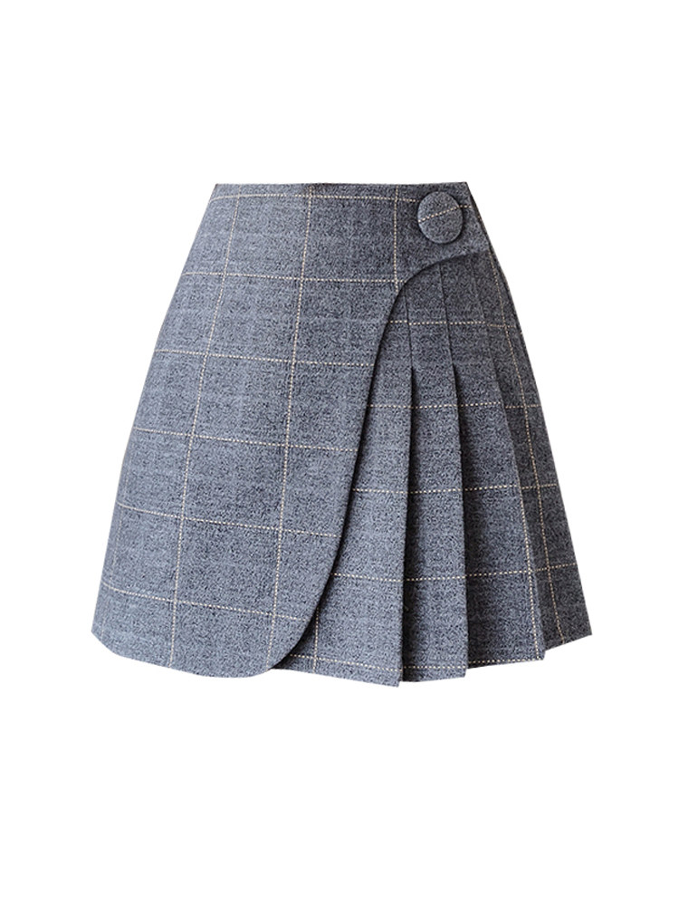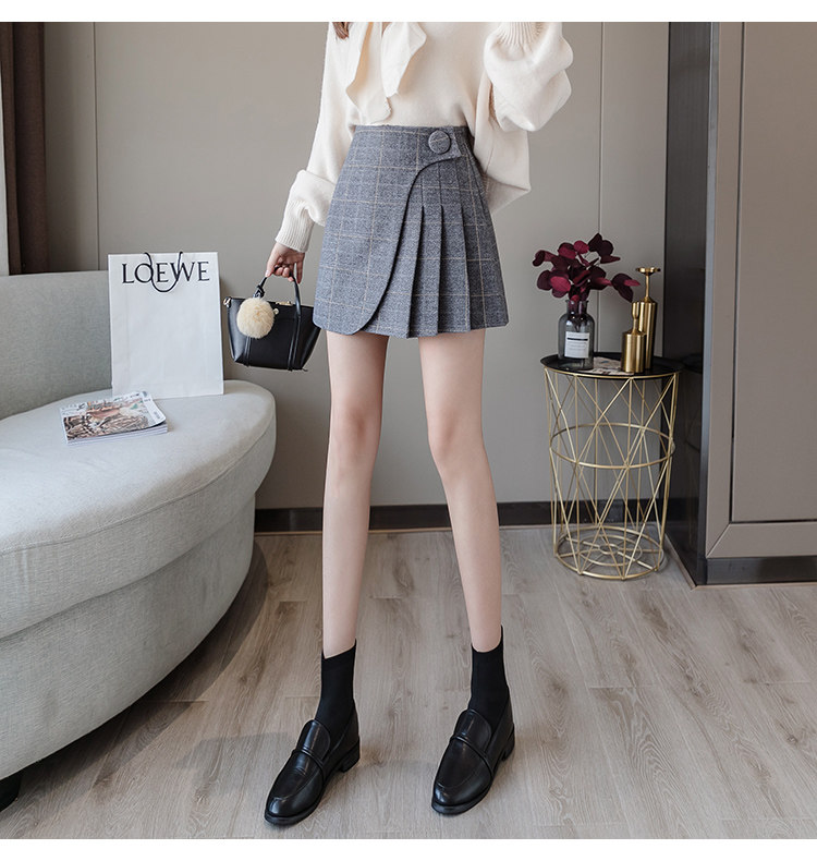 Шерстяная демисезонная юбка в складку, мини-юбка, приталенное клетчатое защитное белье, высокая талия, А-силуэт, увеличенная толщина