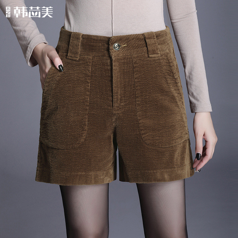 Демисезонные ретро шорты, вельветовые хаки штаны, А-силуэт, 2020, большой размер
