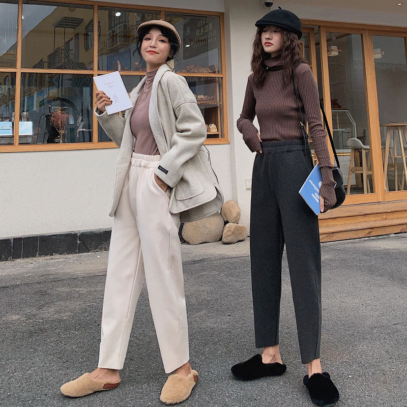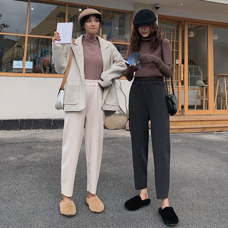 Шерстяные демисезонные леггинсы, приталенные штаны для отдыха, 2020, высокая талия, подходит для подростков