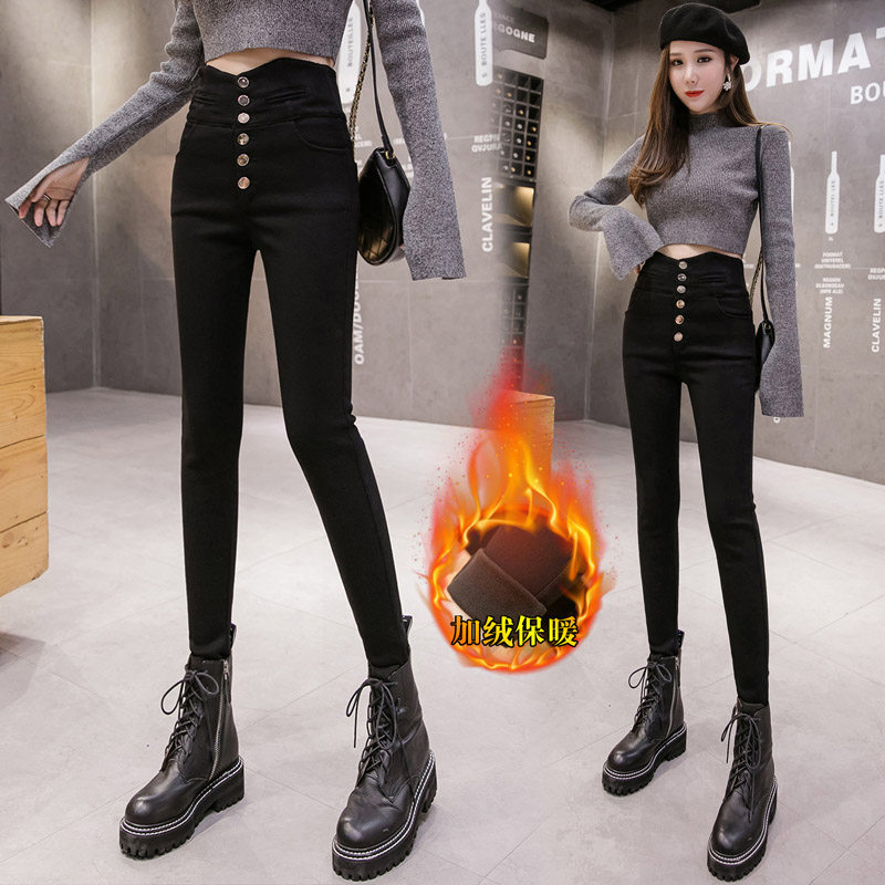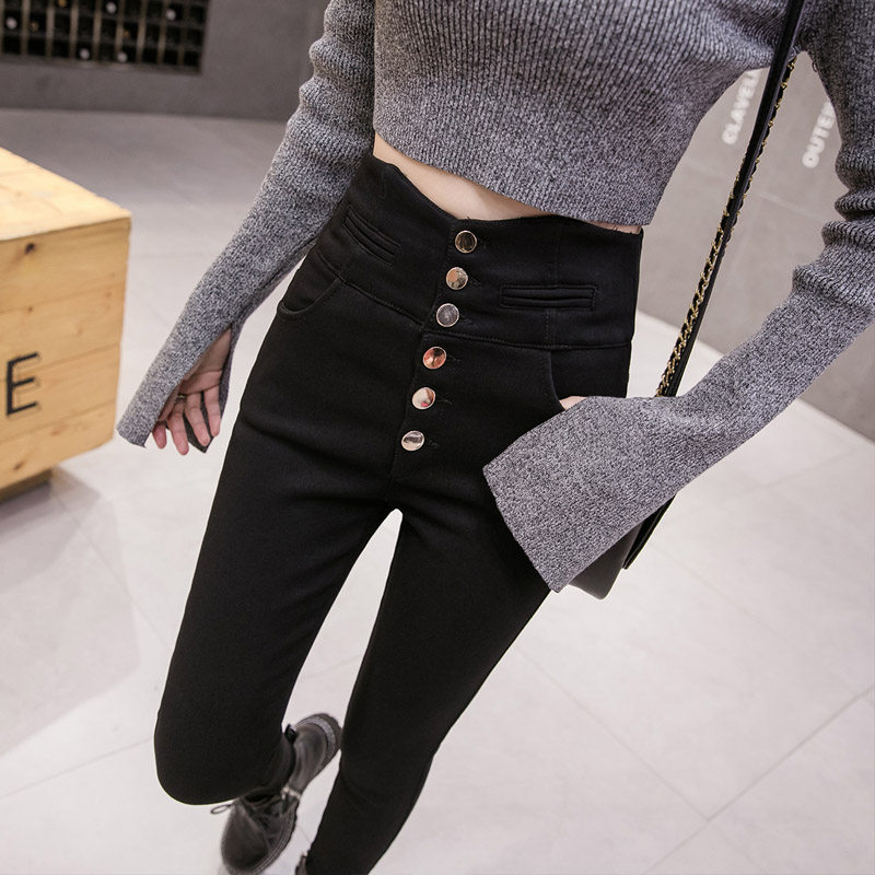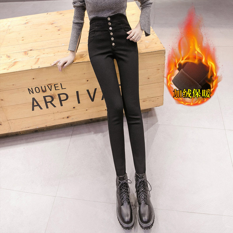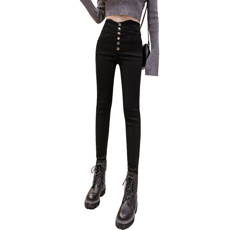 Черные демисезонные утепленные леггинсы, эластичные штаны, приталенный карандаш, высокая талия