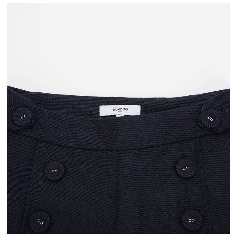 Suncoo Retro Style Buckle Украшению темно -голубых штанов с широкими брюками