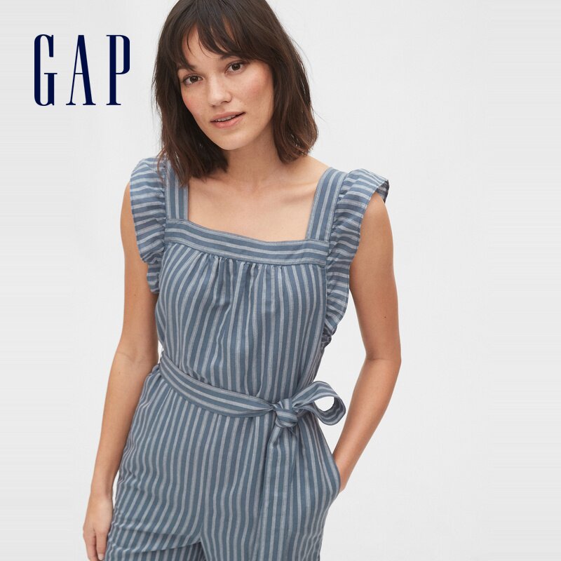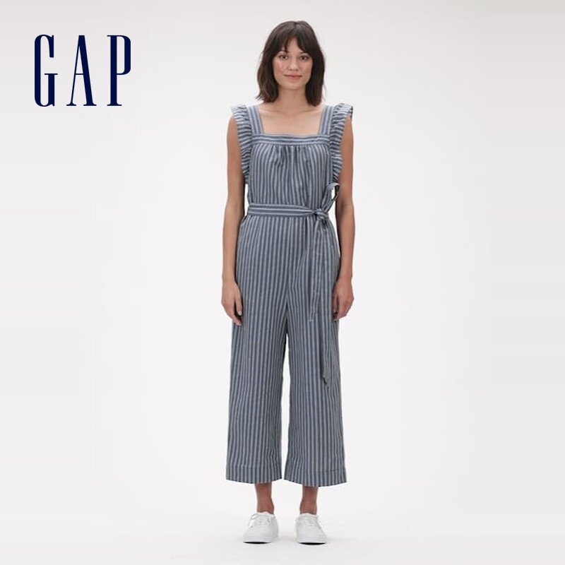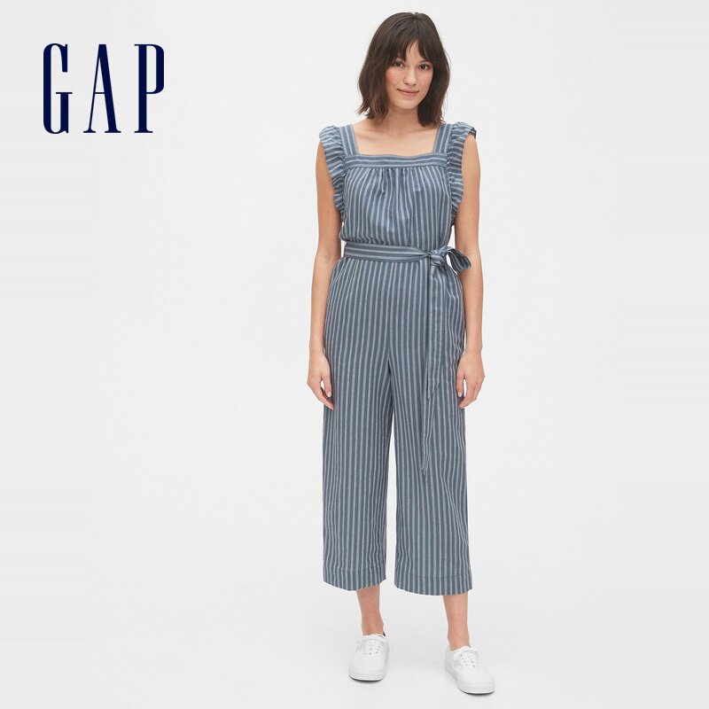 Gap Женский освежающий прямой комбинезон в полоску с рюшами и завязками на талии 583008, осень и зима 2020, новый стиль