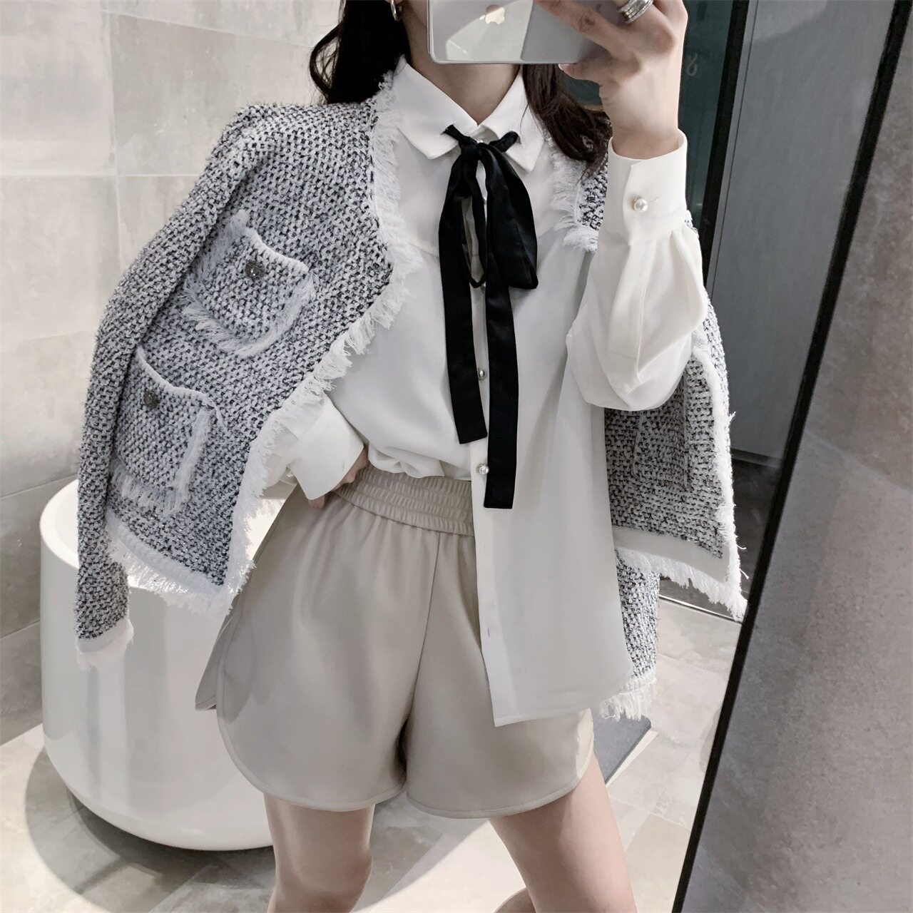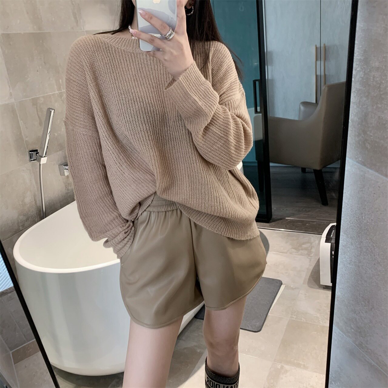 Короткие демисезонные полиуретановые штаны для отдыха, высокая талия, в корейском стиле, яркий броский стиль, оверсайз