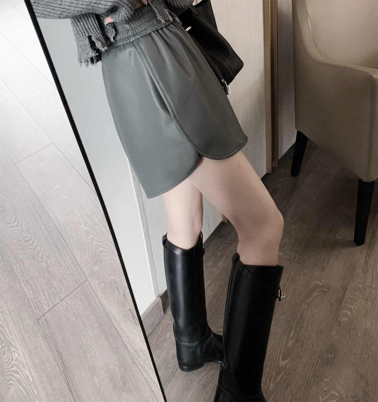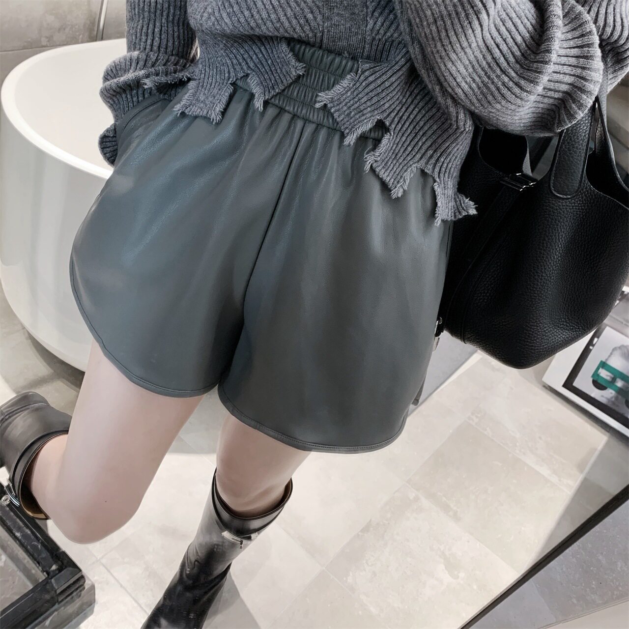 Можно сказать, что маленькие кожаные штаны из ПУ являются лучшими осенью и зимой.