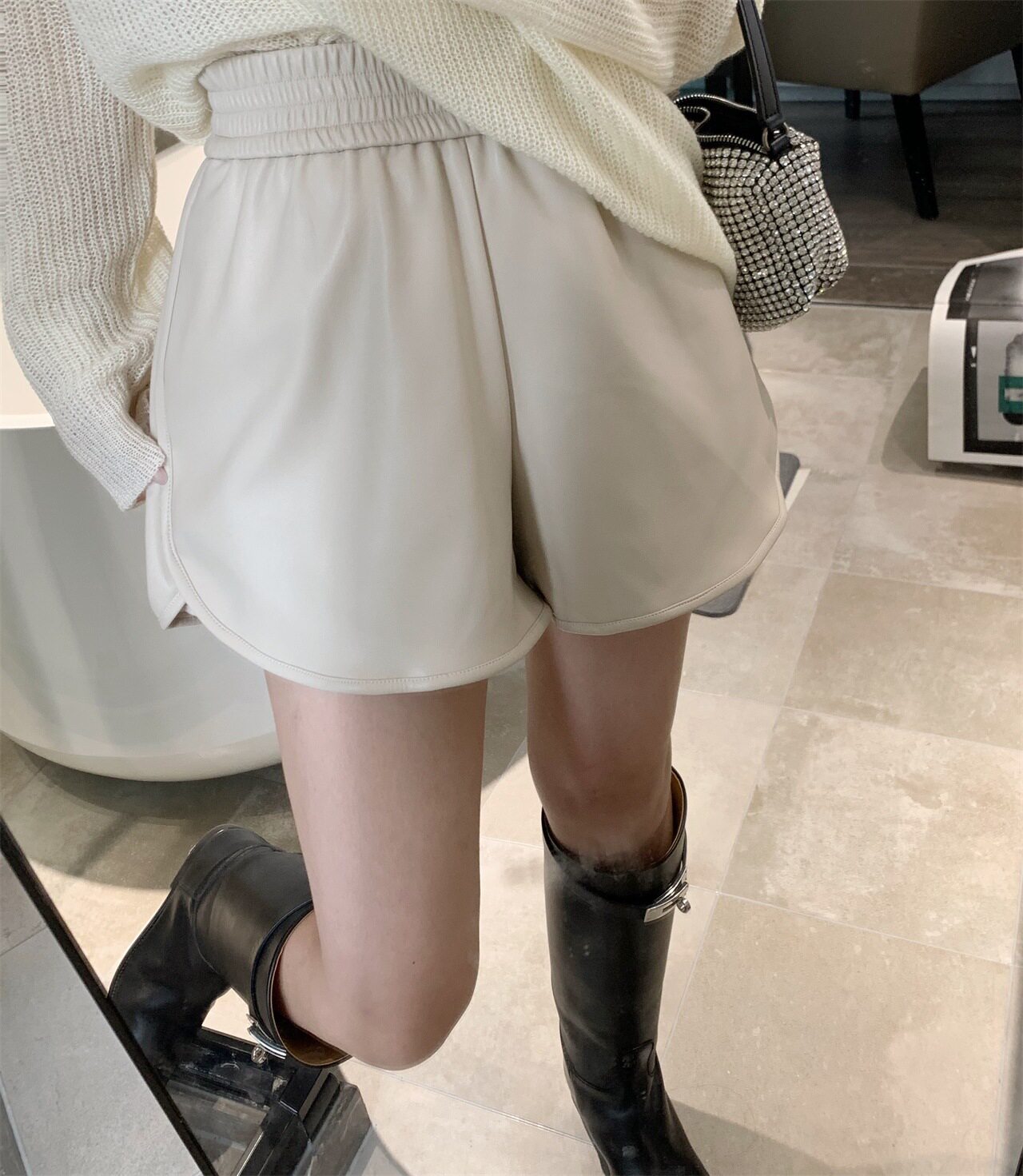 ![]() | [Название стиля]: разноцветные широкие шорты из искусственной кожи.