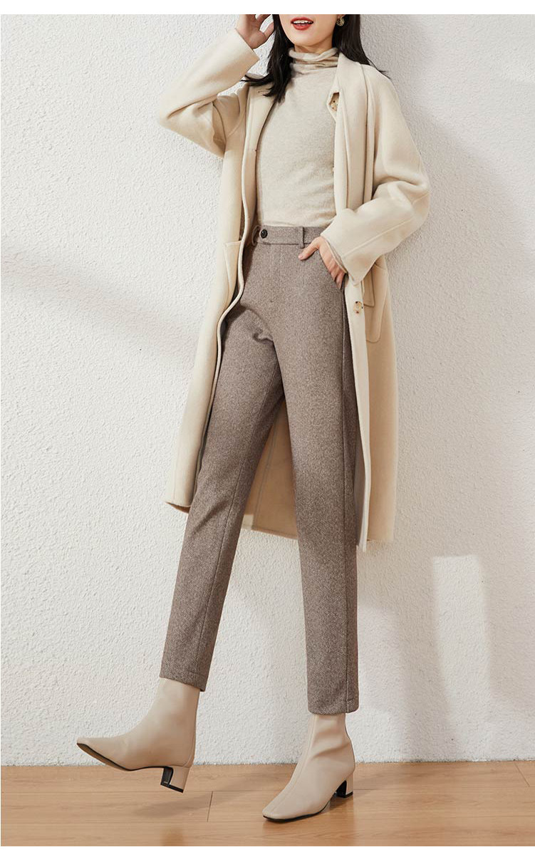 Хаки шерстяные демисезонные зимние штаны для отдыха, свободный прямой крой, 2020, оверсайз