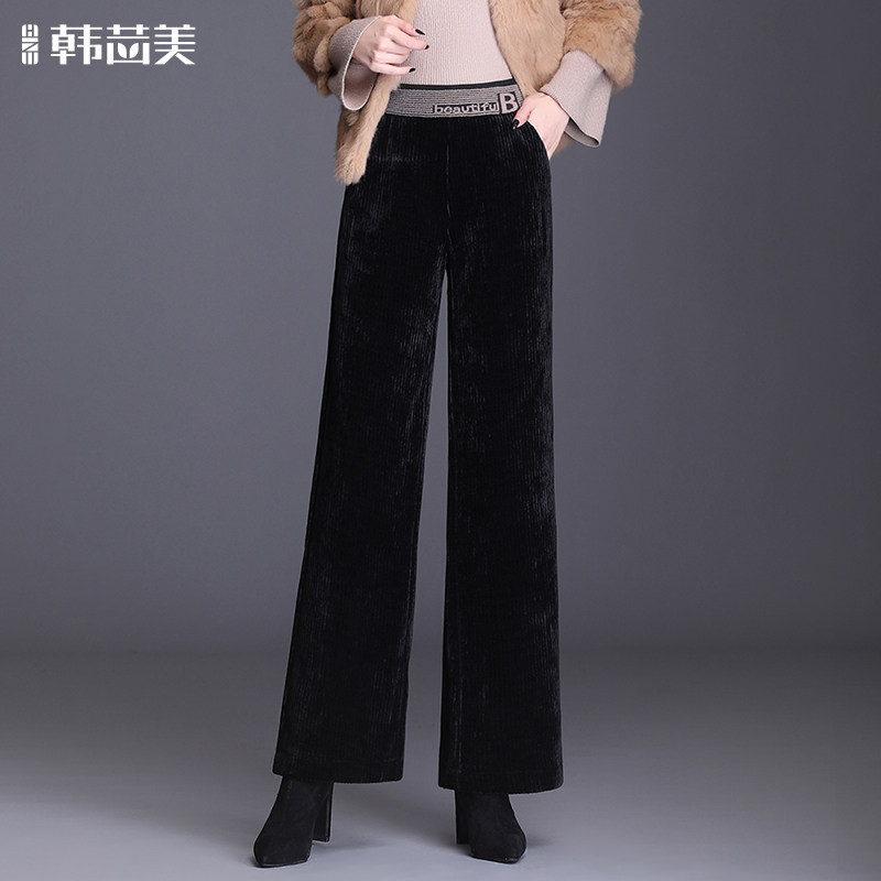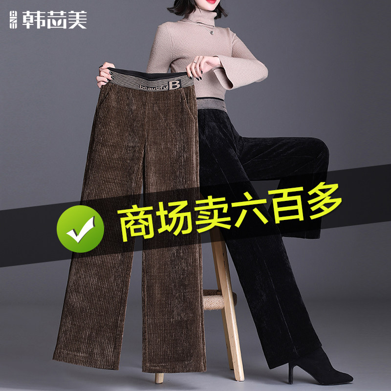 Демисезонные штаны, бархатные вельветовые леггинсы, высокая талия, большой размер, свободный прямой крой