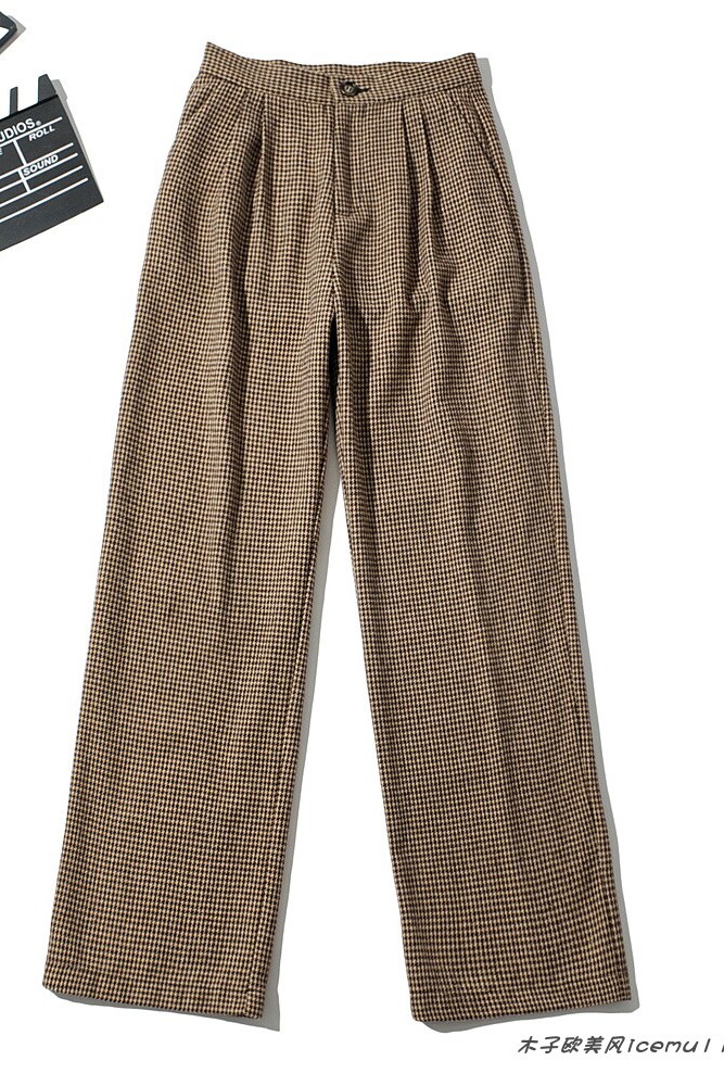 Брендовый ретро шерстяной костюм, штаны, в американском стиле, высокая талия, по фигуре, свободный прямой крой