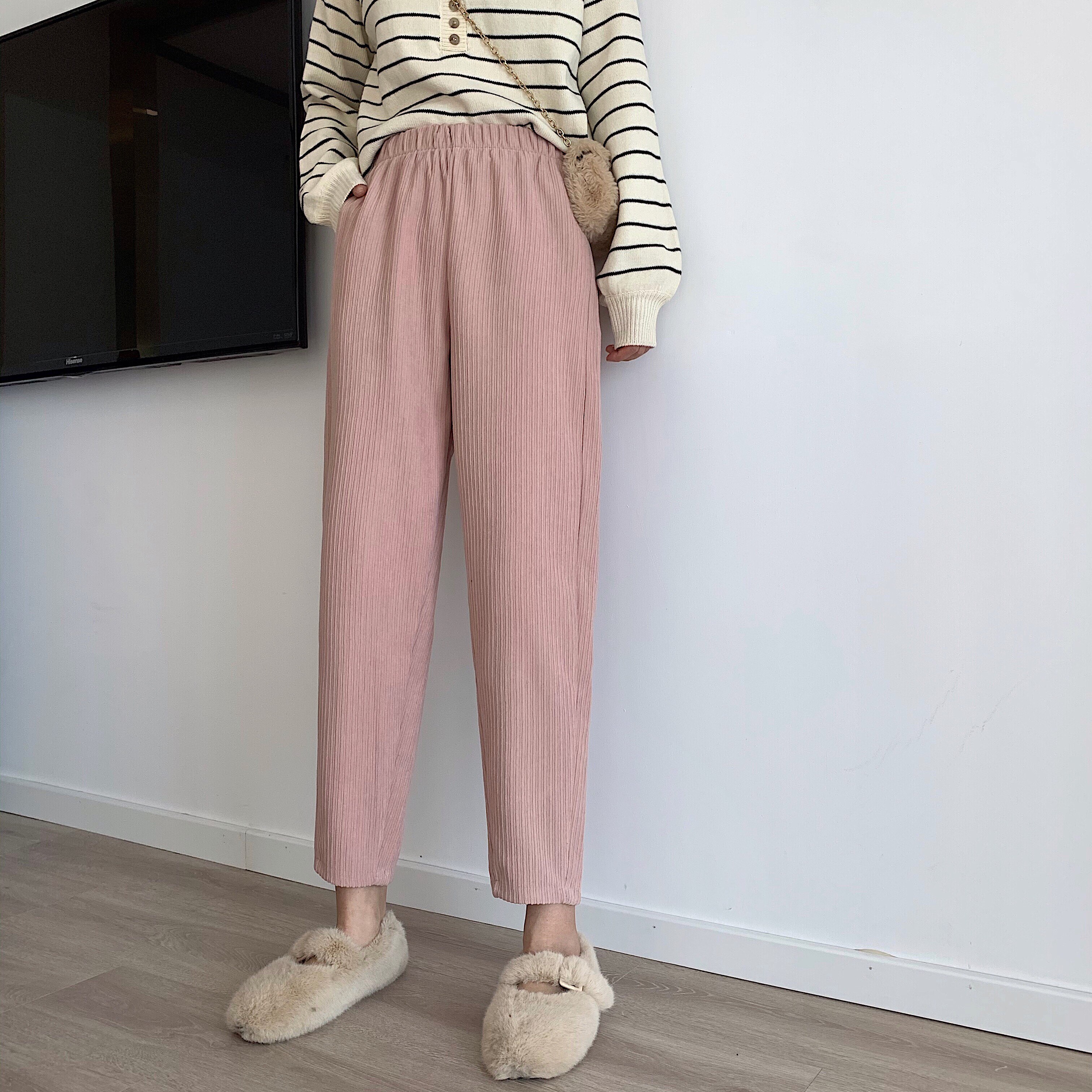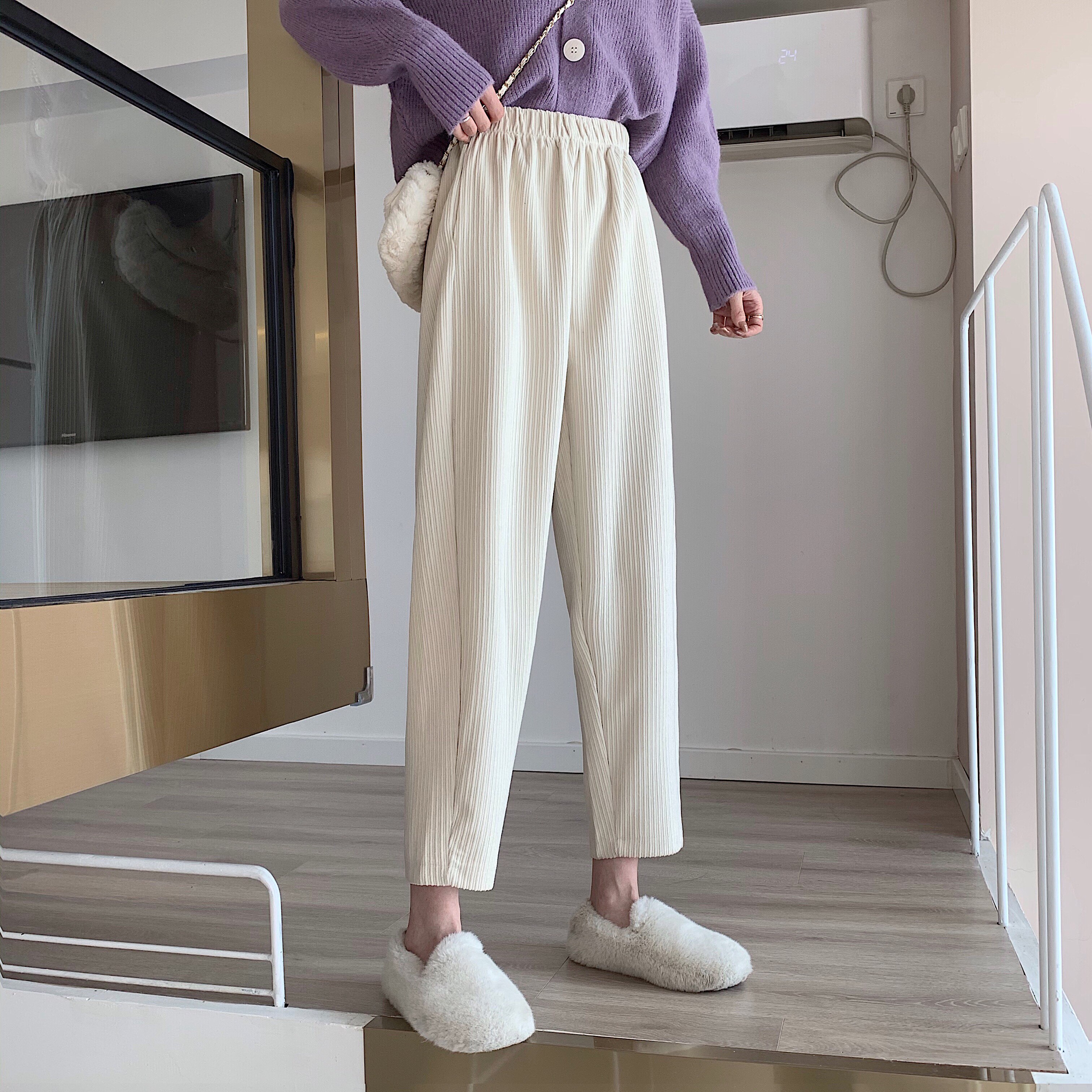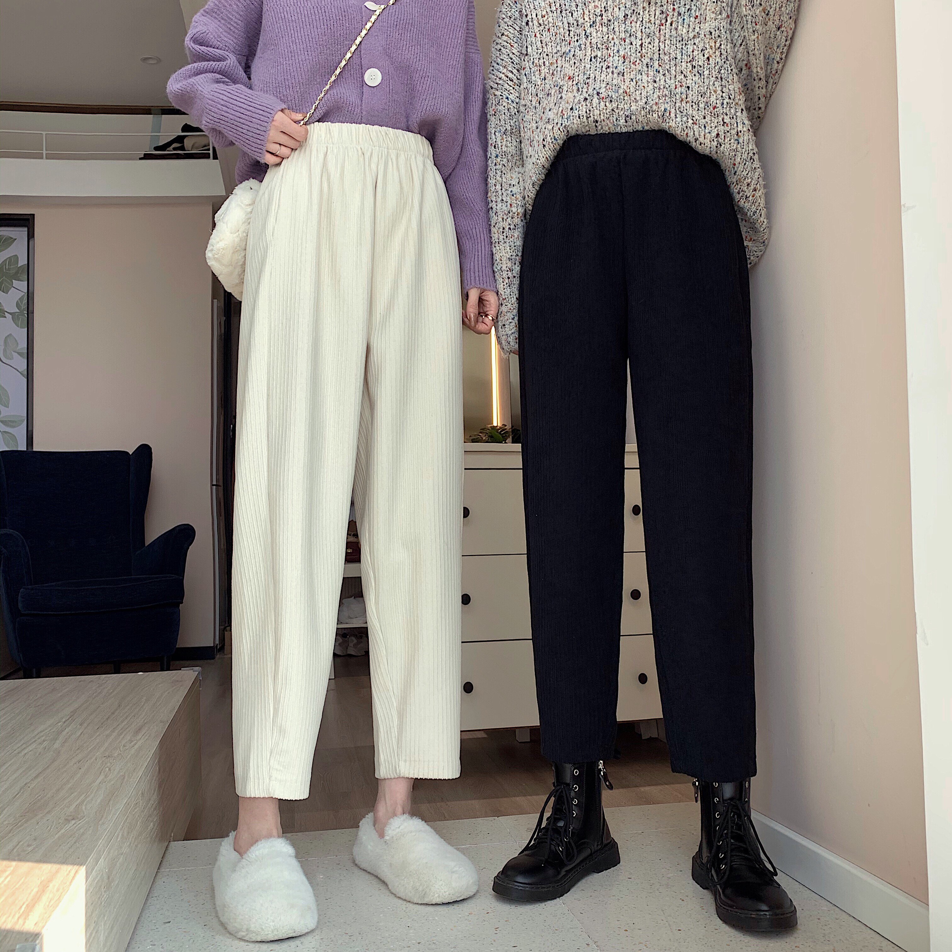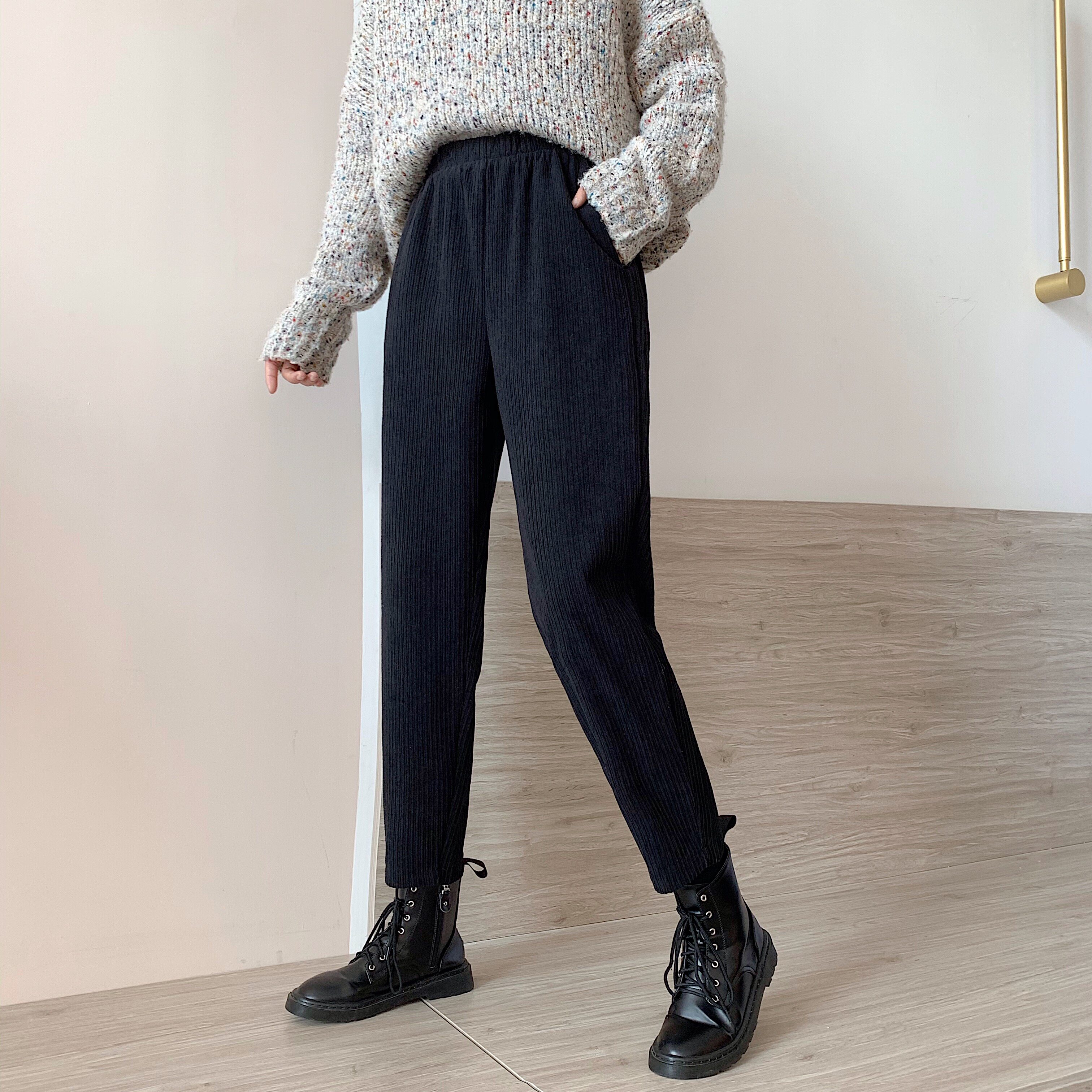 Осенние леггинсы, вельветовые бархатные штаны, высокая талия, увеличенная толщина, свободный прямой крой