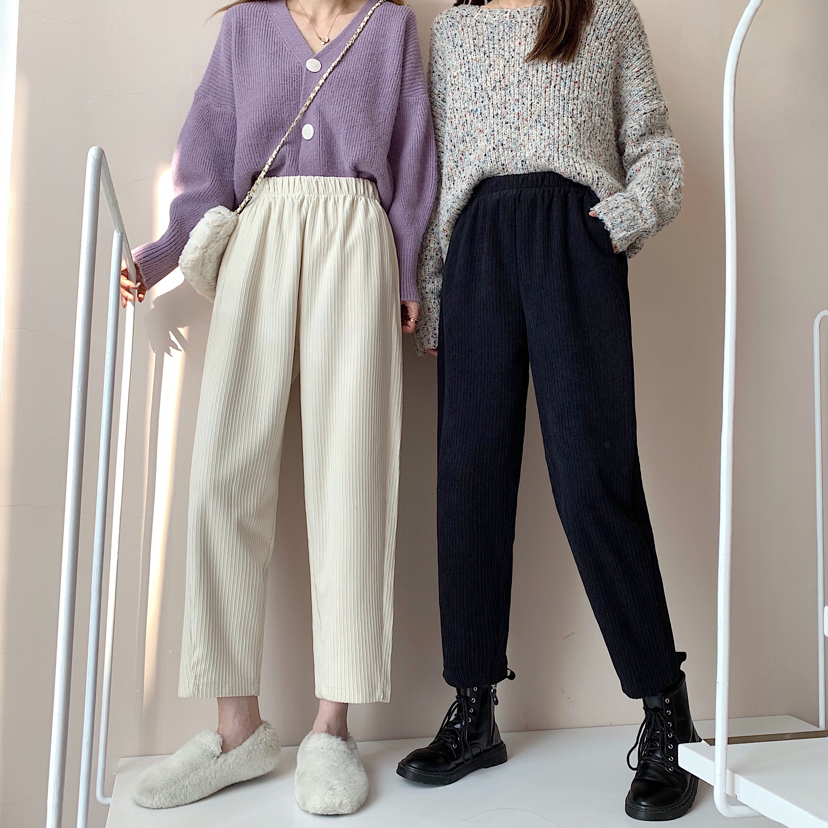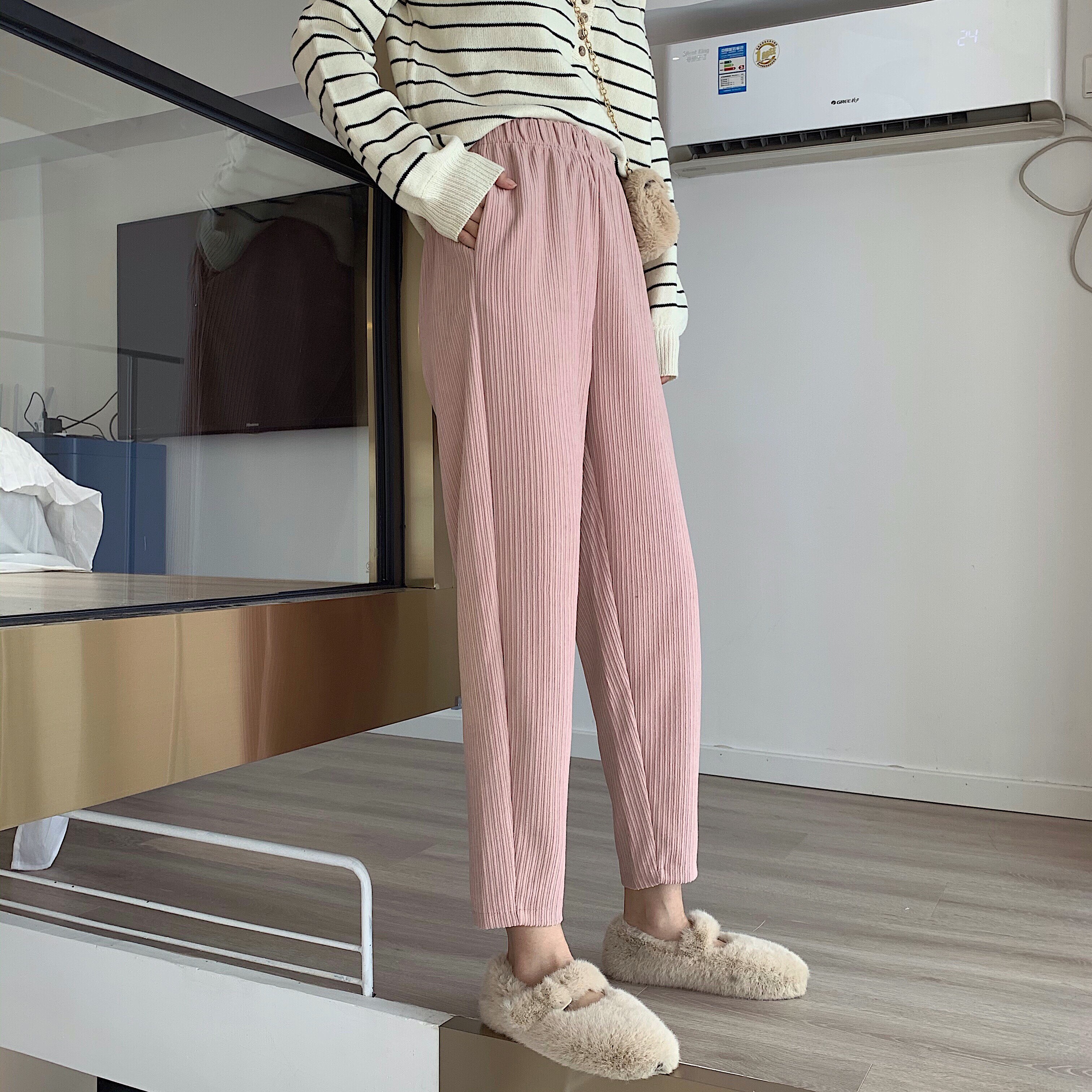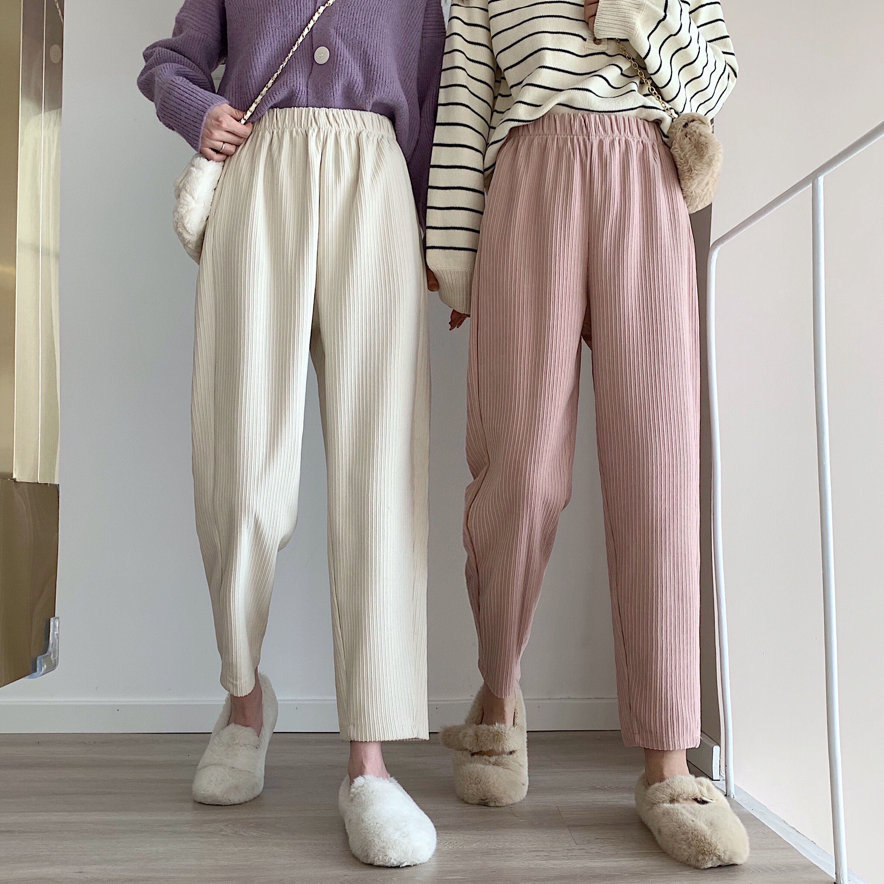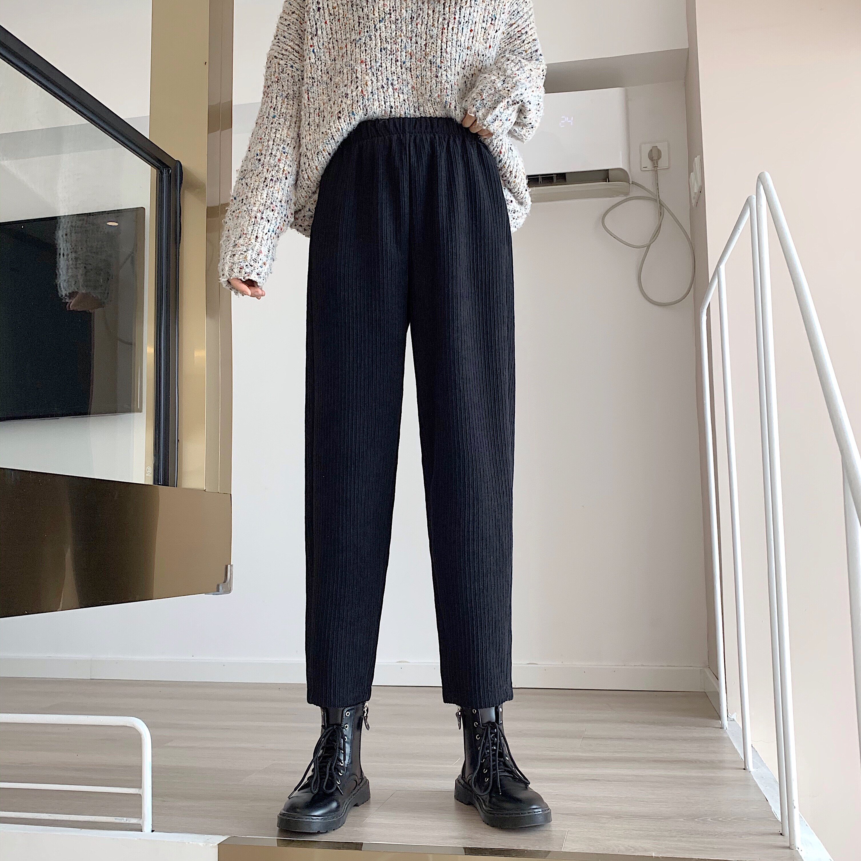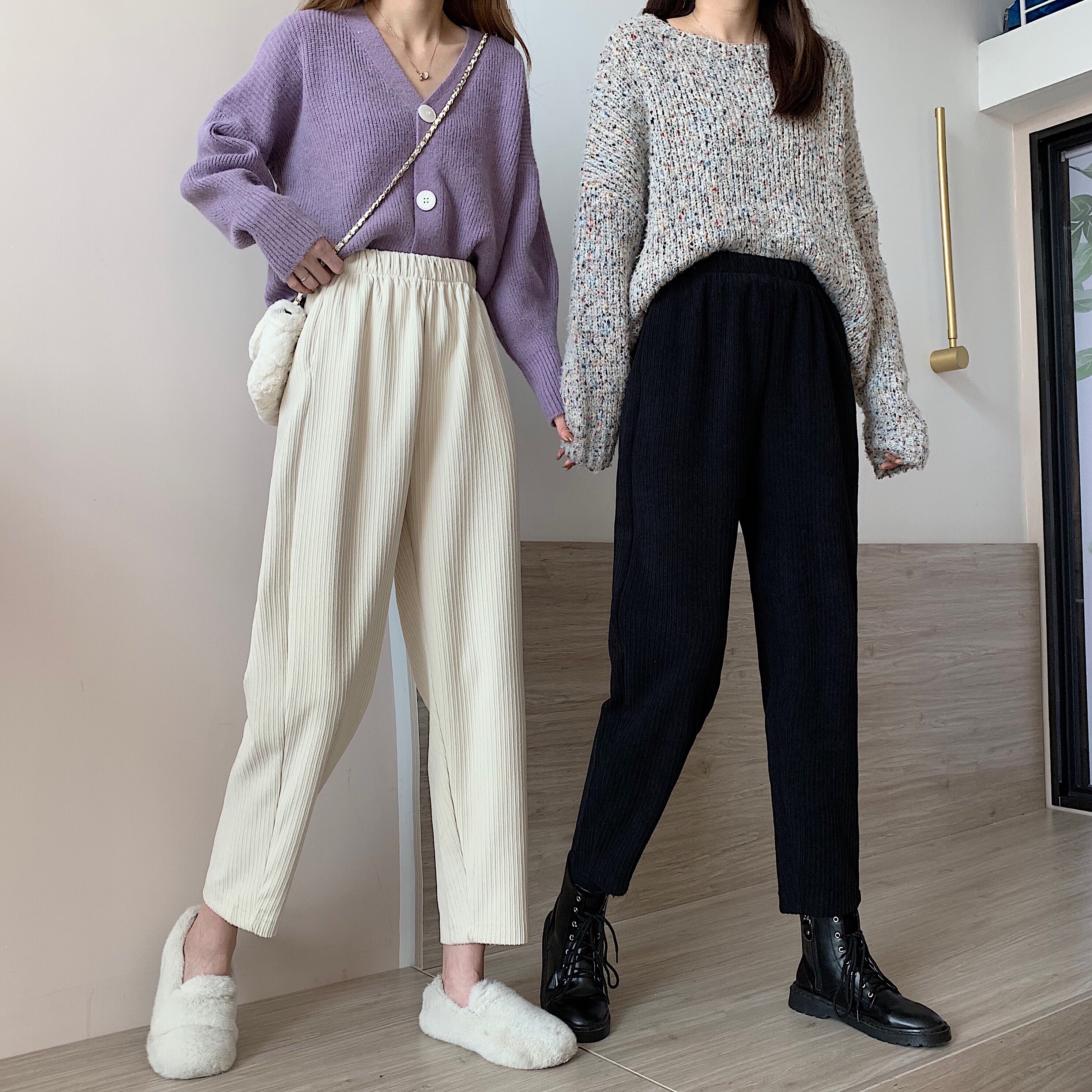 Осенние леггинсы, вельветовые бархатные штаны, высокая талия, увеличенная толщина, свободный прямой крой