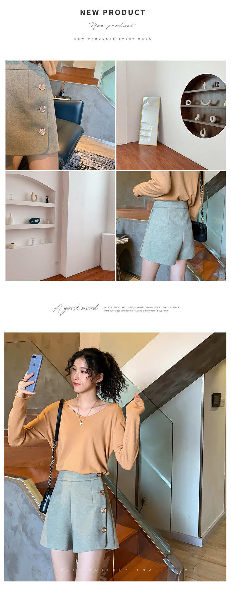 Шорты, весенние штаны, высокие сапоги, коллекция 2022, оверсайз, А-силуэт, высокая талия