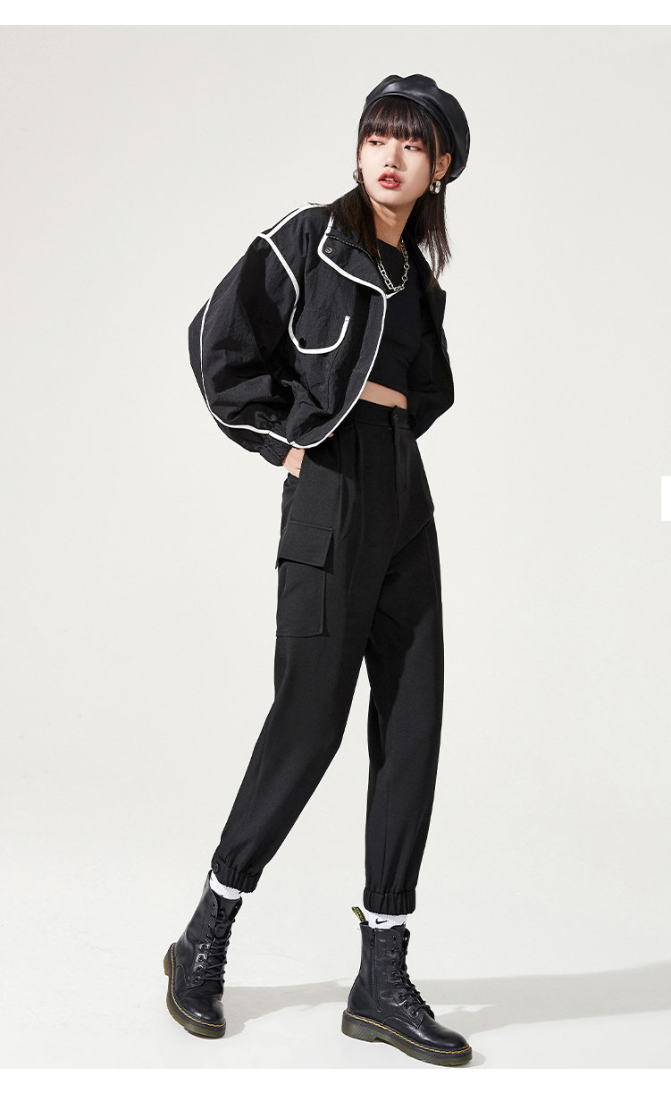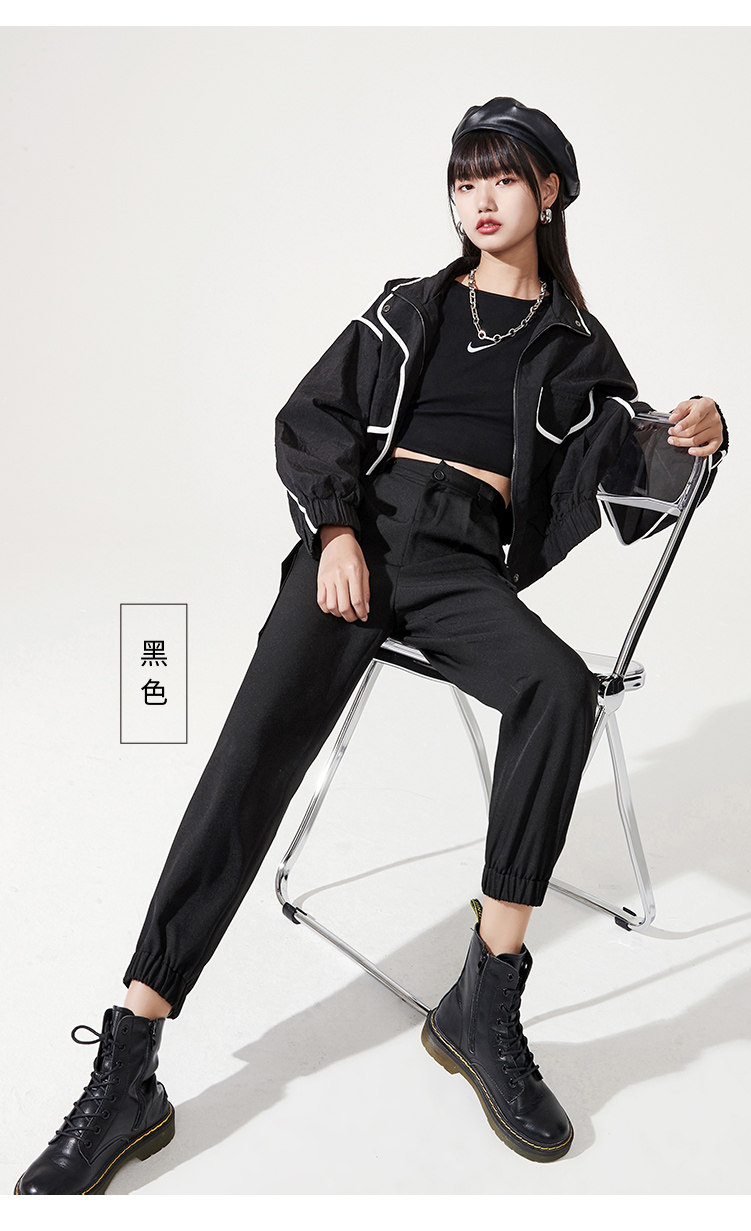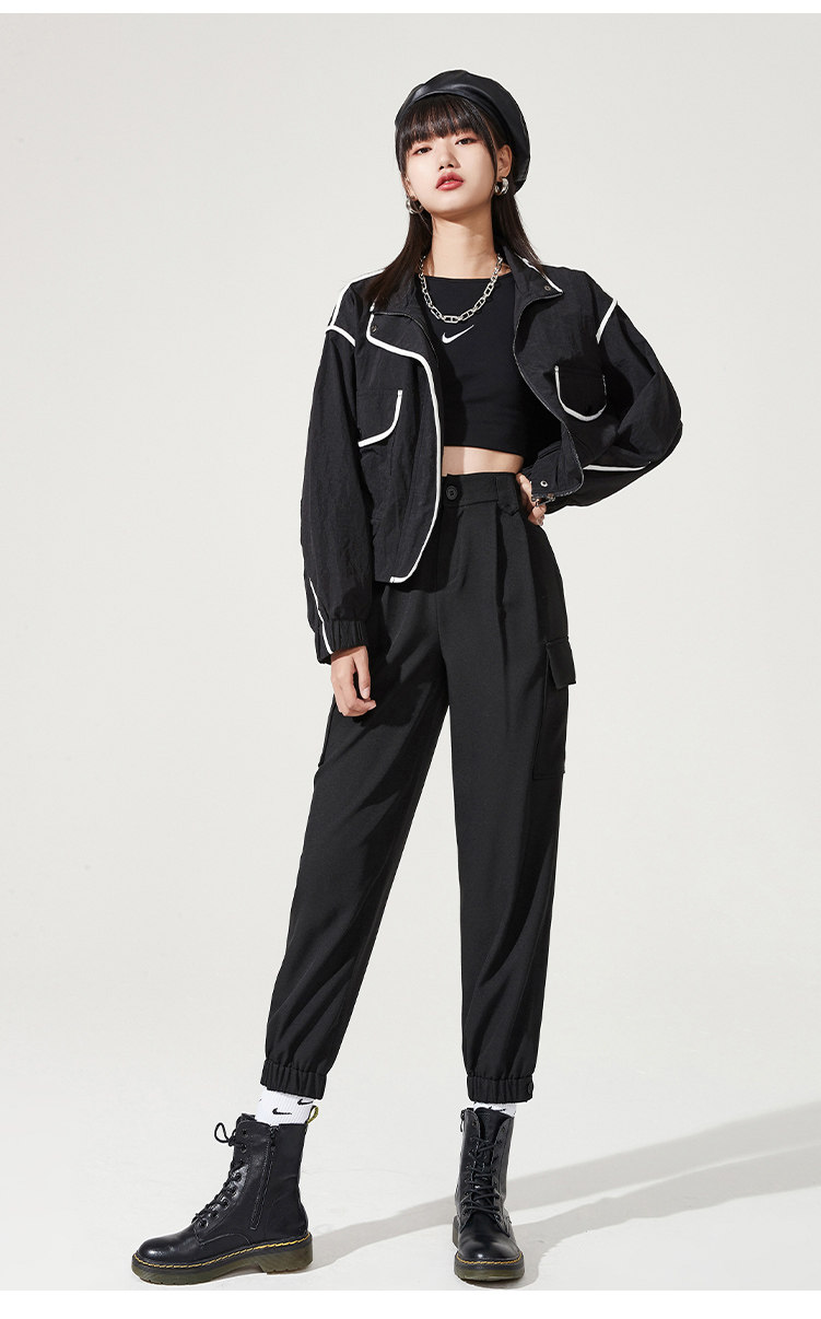 Черная униформа медсестры, осенние спортивные штаны, высокая талия, оверсайз