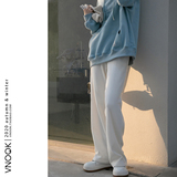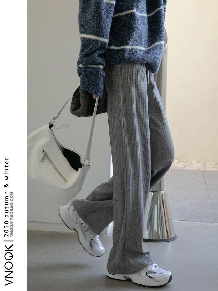 Трикотажные демисезонные штаны, леггинсы для отдыха, высокая талия, свободный прямой крой