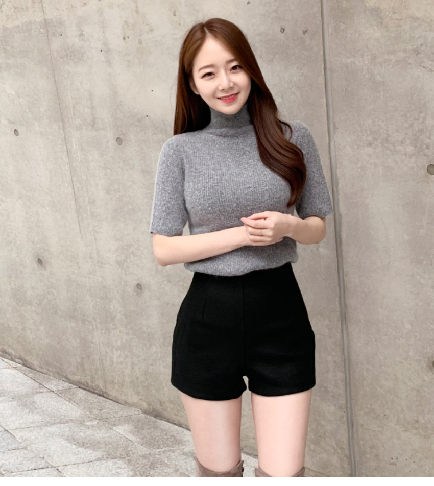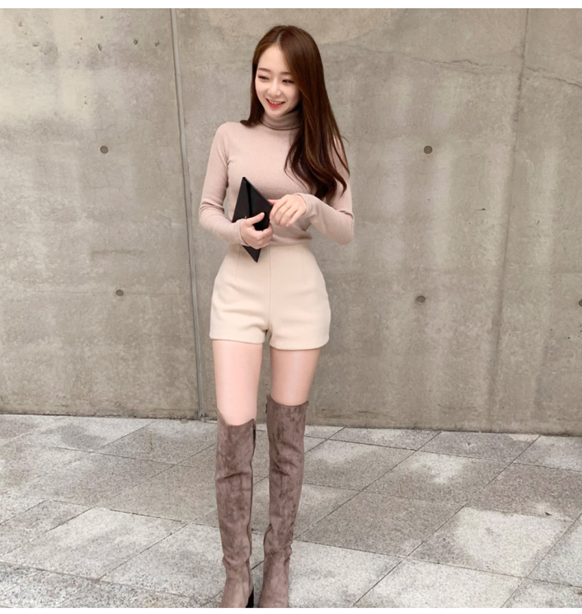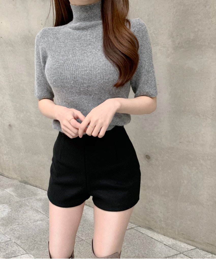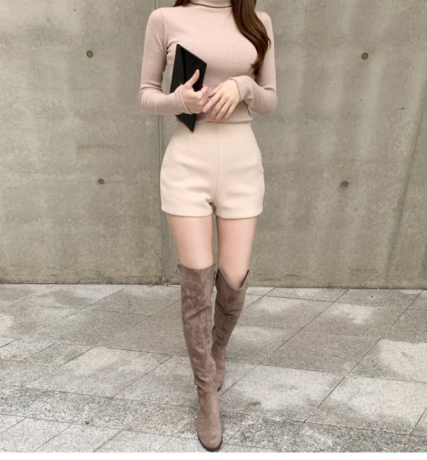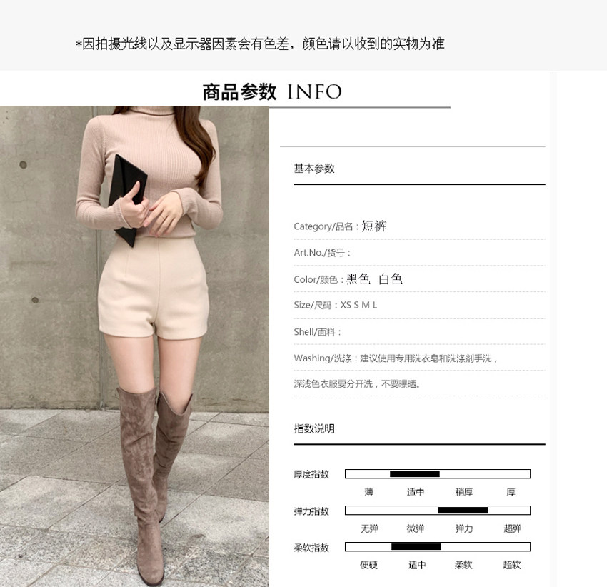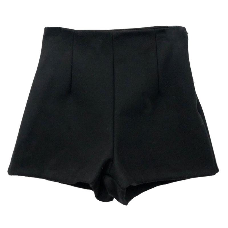 Шерстяные демисезонные шорты, эластичные черные леггинсы, штаны, высокая талия, в обтяжку, с акцентом на бедрах