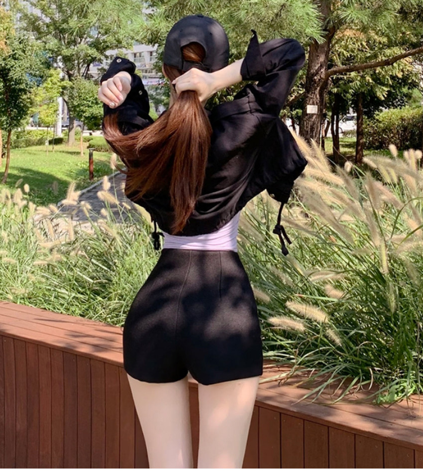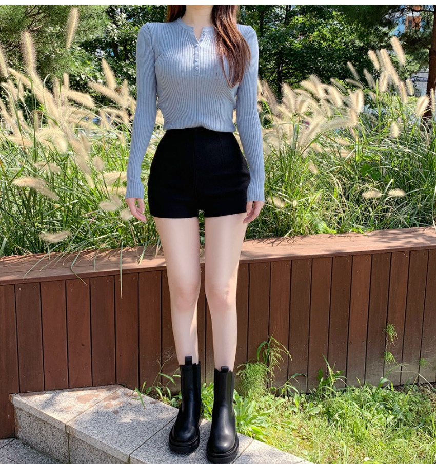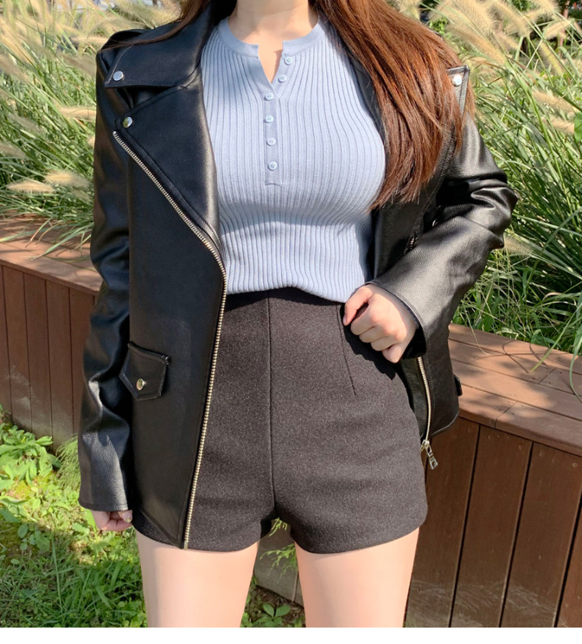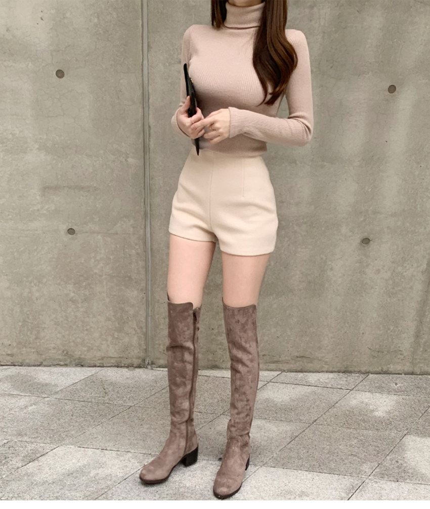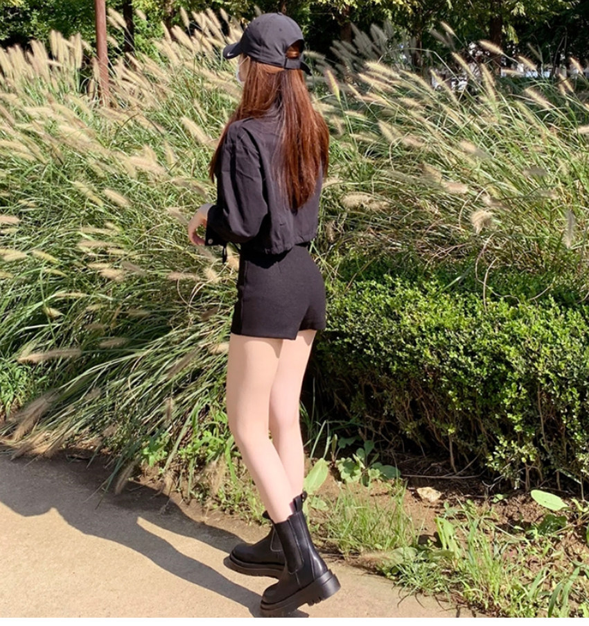 Шерстяные демисезонные шорты, эластичные черные леггинсы, штаны, высокая талия, в обтяжку, с акцентом на бедрах