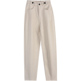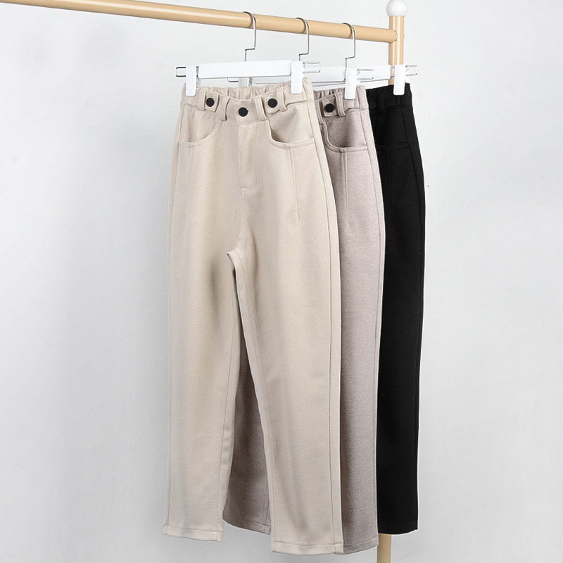 Демисезонные черные шерстяные штаны, 2020, в корейском стиле, увеличенная толщина, свободный крой
