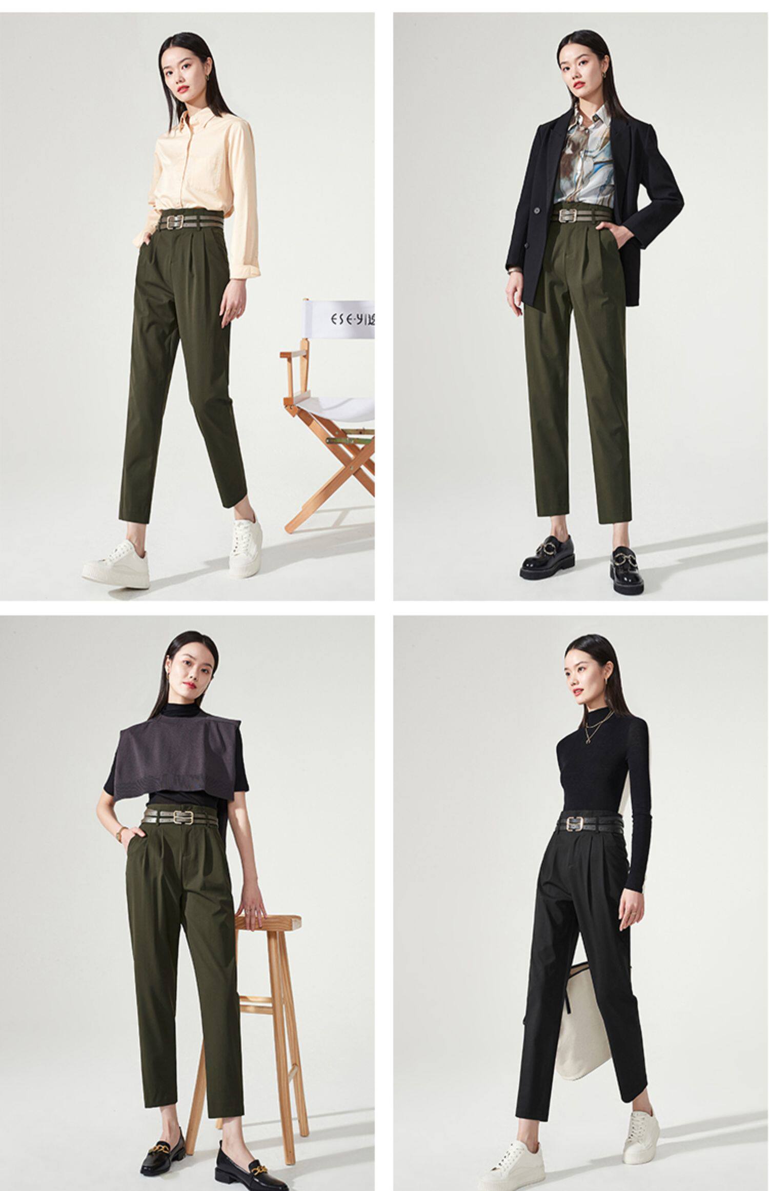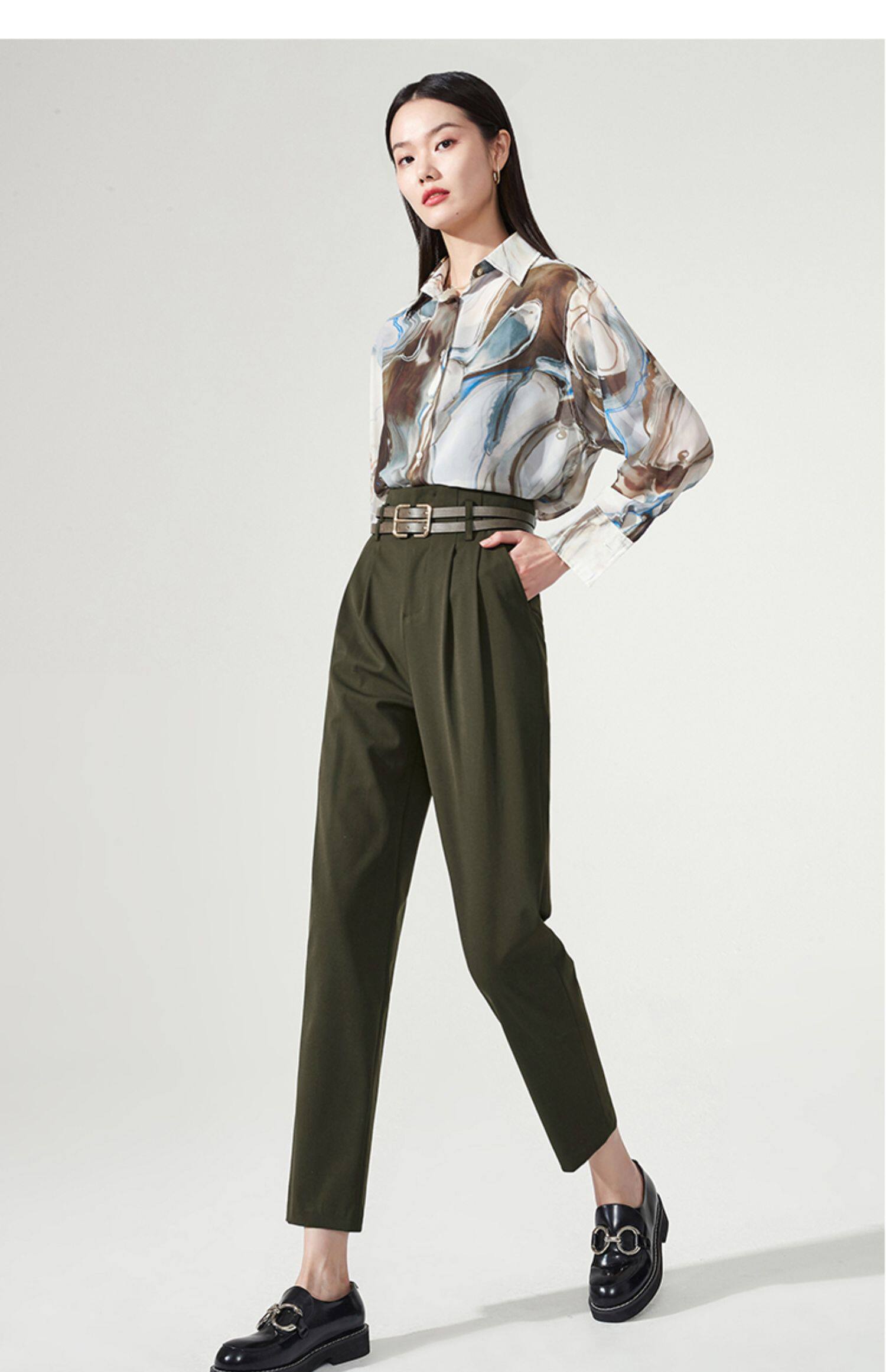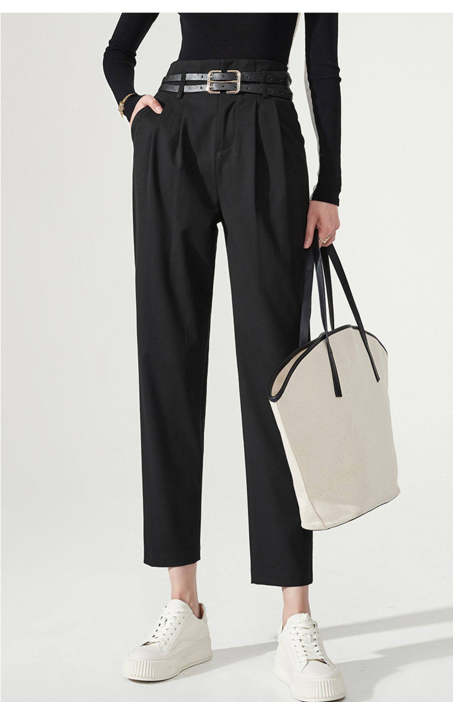 Осенние штаны, приталенный костюм, свободный прямой крой, высокая талия
