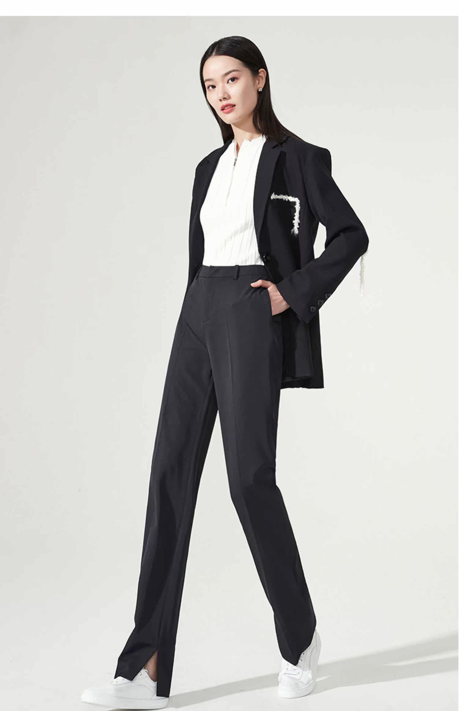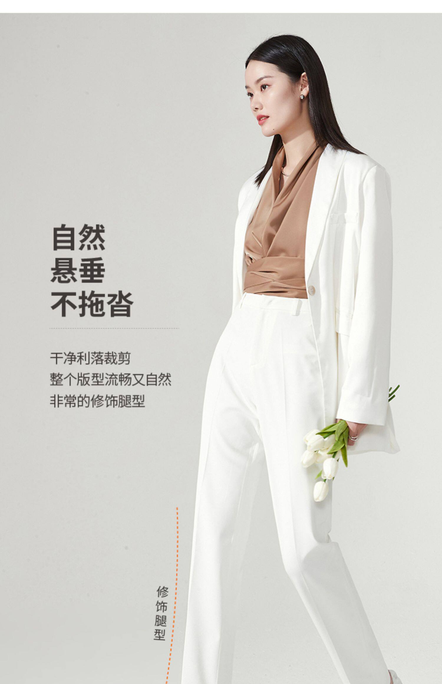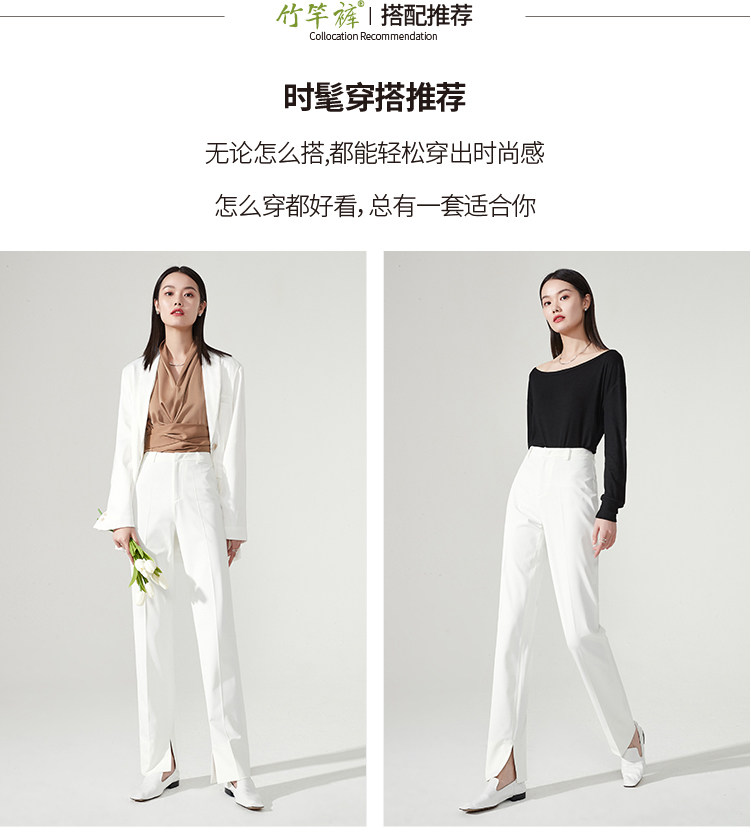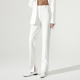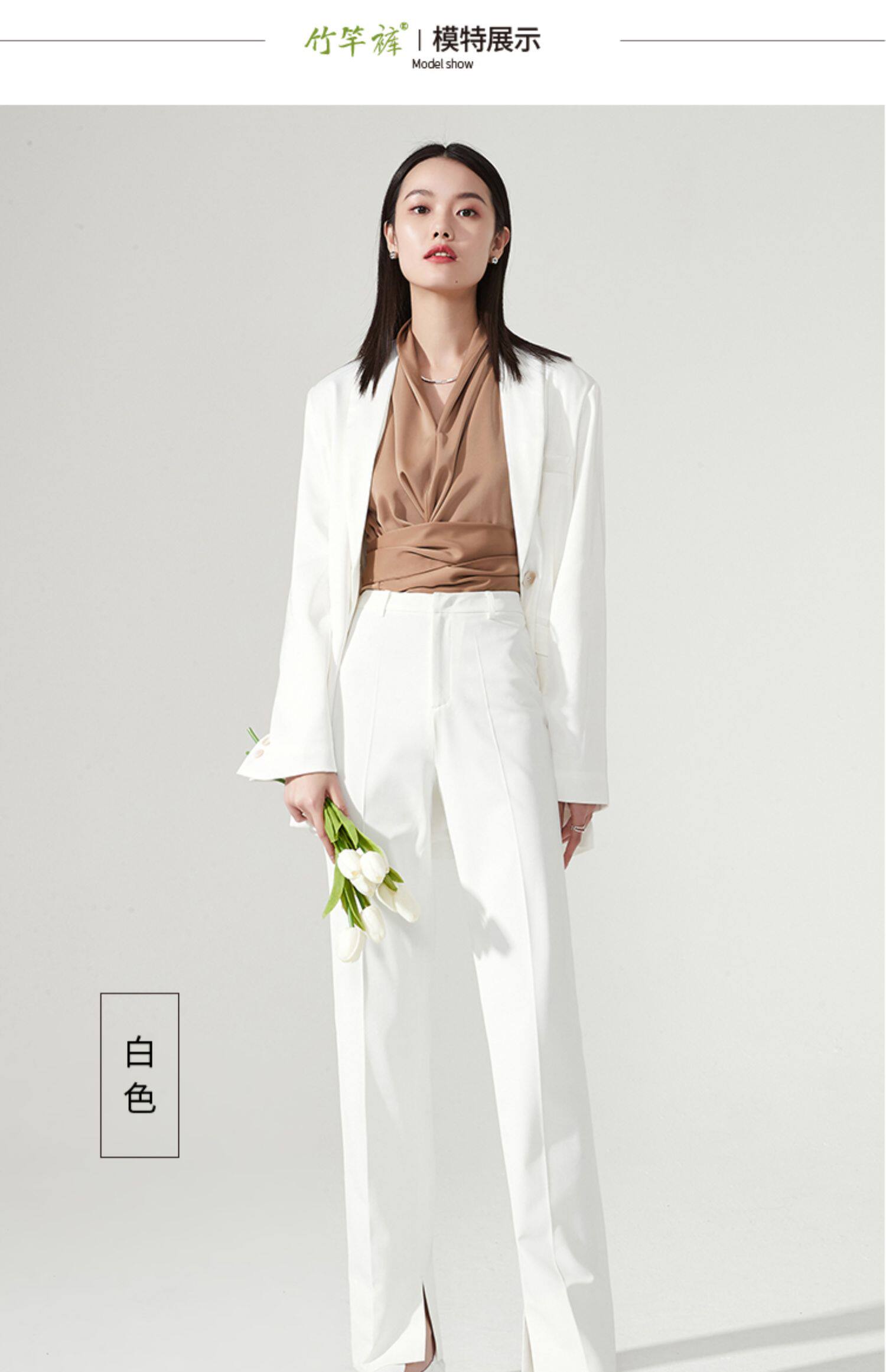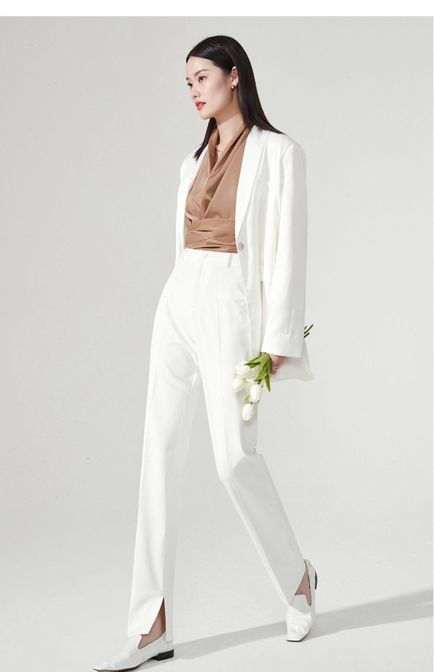 Белые весенние штаны, костюм, тренд сезона, свободный прямой крой, высокая талия
