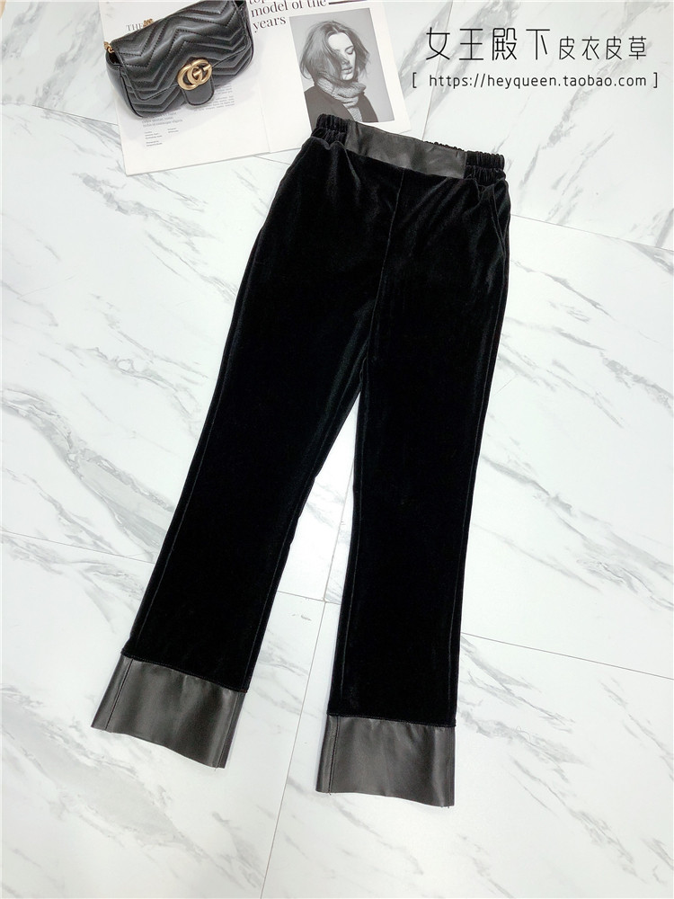 Бархатные модные штаны из овчины, демисезонные штаны-клёш, овечка, из натуральной кожи, новая коллекция, европейский стиль
