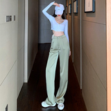 Осенние штаны, костюм, коллекция 2021, городской стиль, высокая талия, популярно в интернете, свободный прямой крой