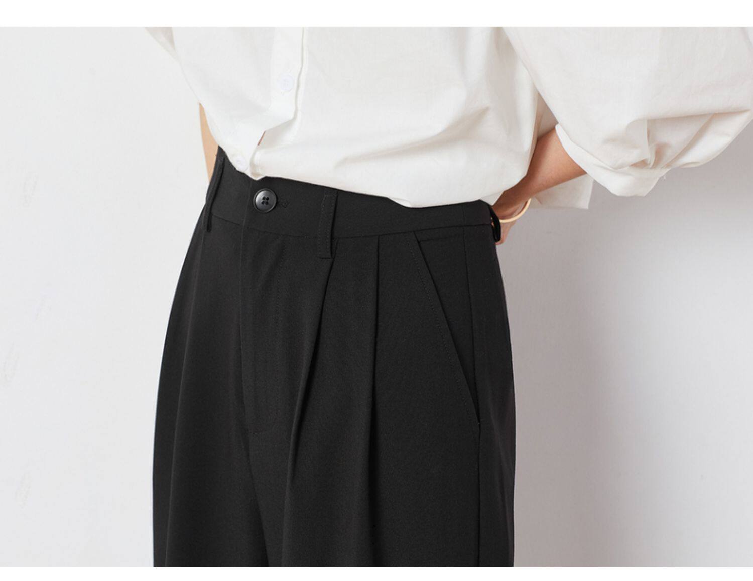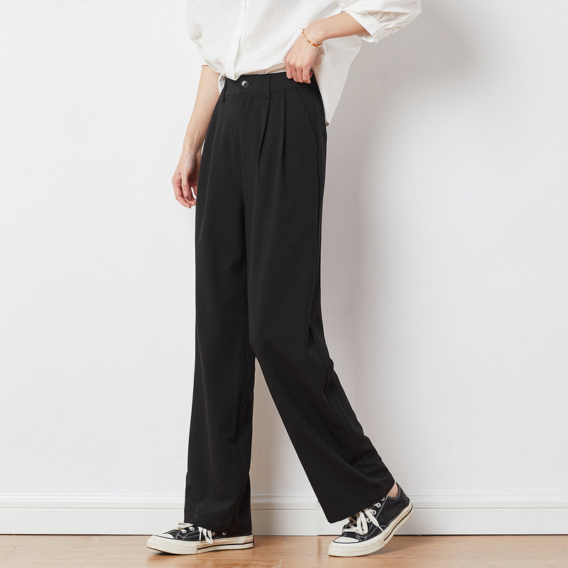 Летние черные штаны для отдыха, костюм, высокая талия, свободный прямой крой, яркий броский стиль