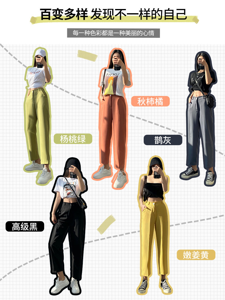 Костюм, тонкие штаны для отдыха, высокая талия, свободный прямой крой, подходит для подростков
