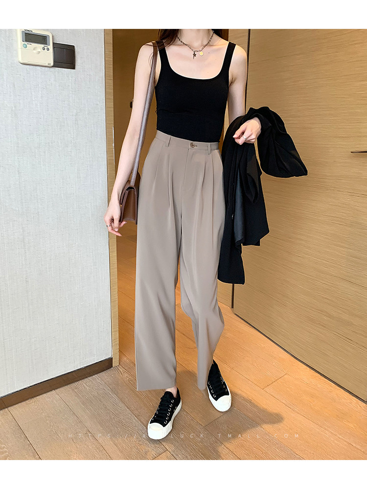 Костюм, приталенные штаны для отдыха, свободный прямой крой, коллекция 2022, высокая талия