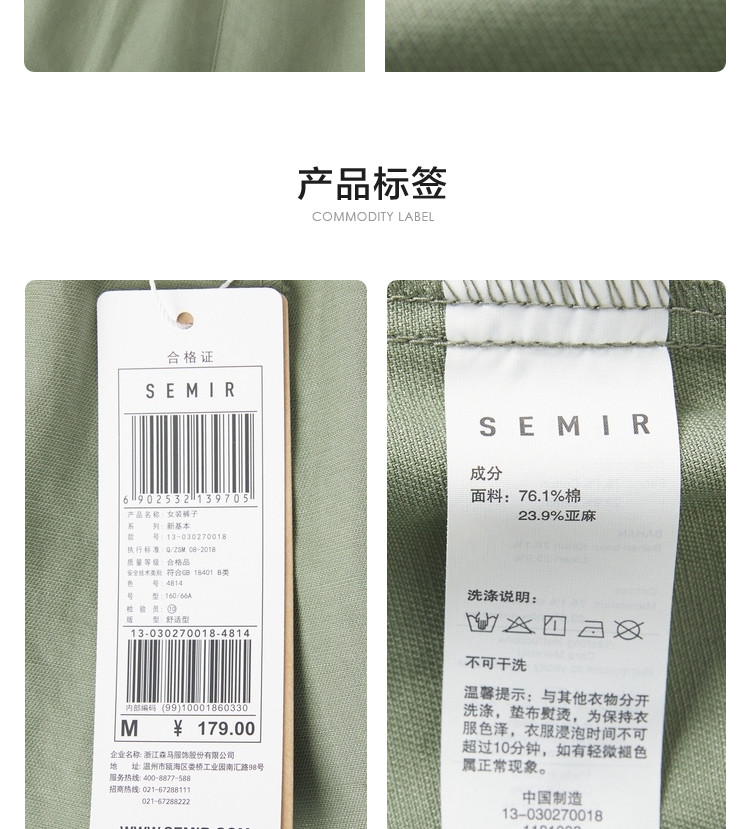 Semir, летние тонкие штаны, свободный прямой крой, из хлопка и льна