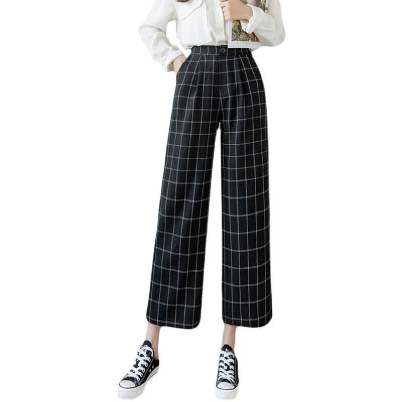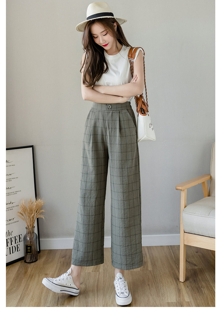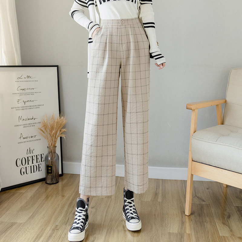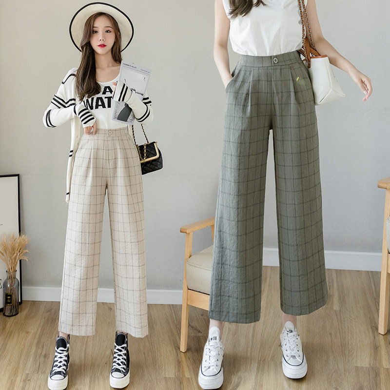 Летние тонкие штаны, повседневные брюки, из хлопка и льна, высокая талия, свободный прямой крой