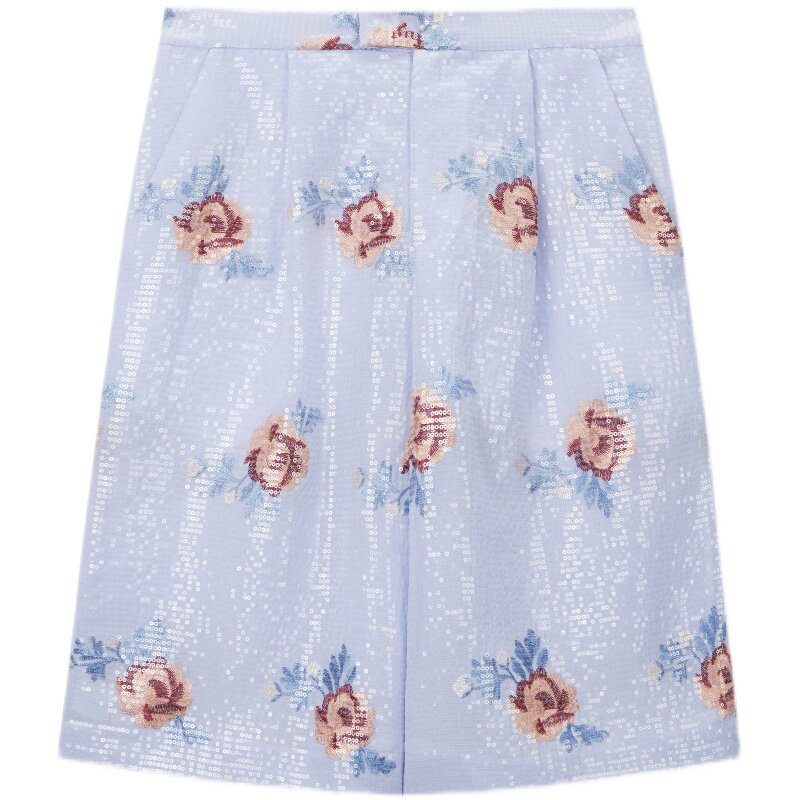 Синие блестки для ногтей, костюм, куртка, штаны, с вышивкой, в цветочек
