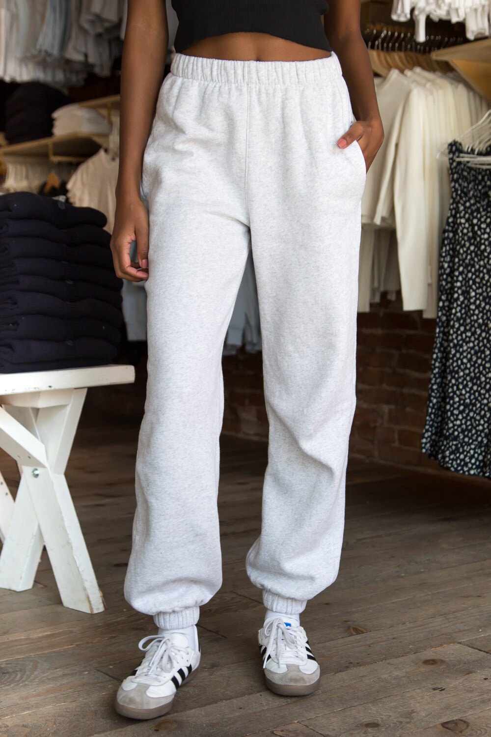 BrandyMelville, местный агент по закупкам ROSA СПОРТИВНЫЕ БРЮКИ светло-серые спортивные брюки и спортивные штаны с эластичной резинкой на талии