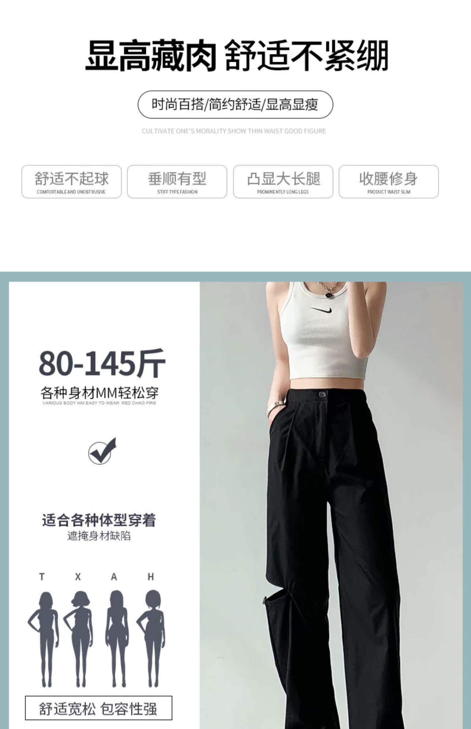 Tide, черные тонкие штаны для отдыха, коллекция 2021, оверсайз, свободный прямой крой