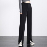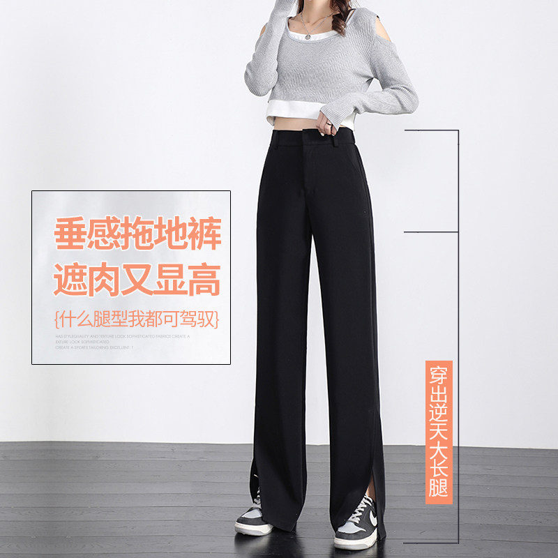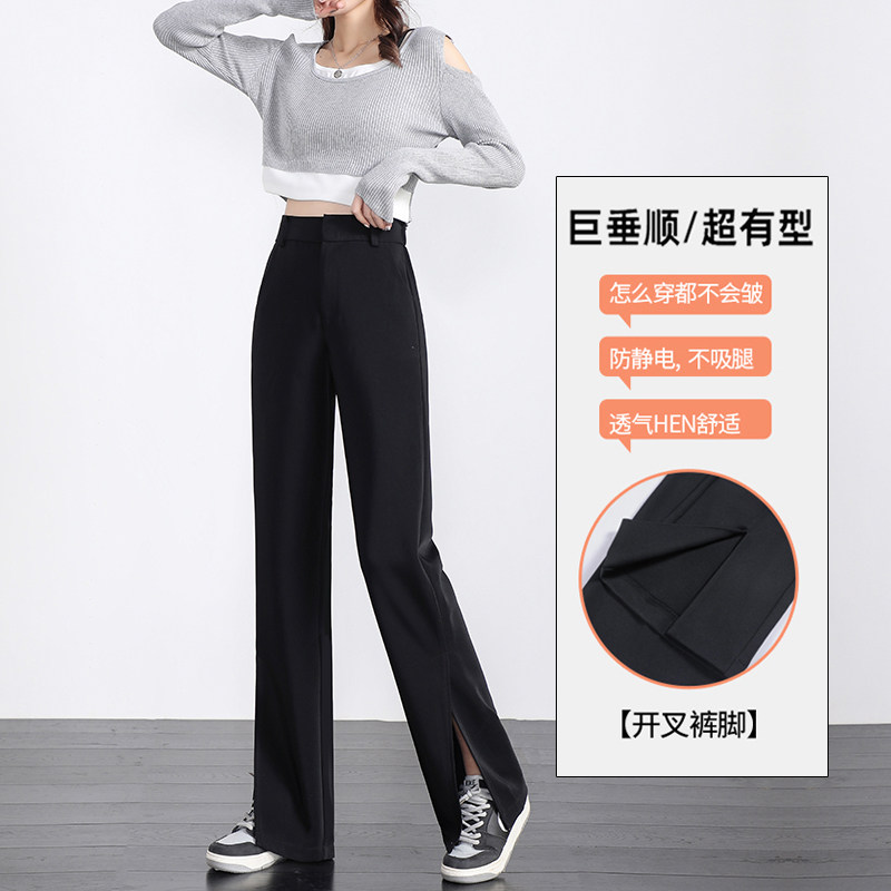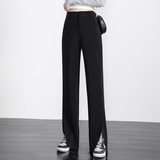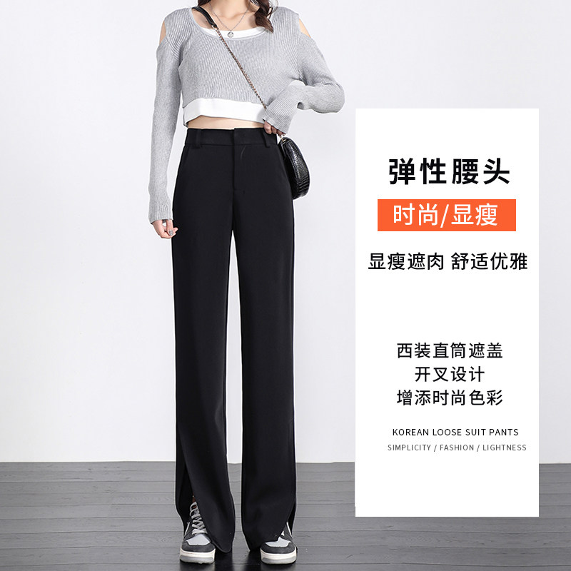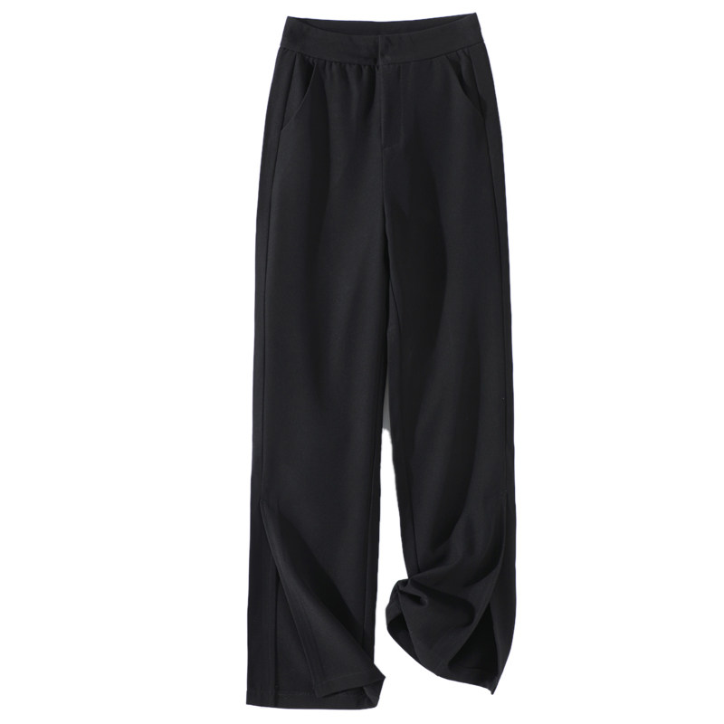 Черный костюм, осенние штаны, свободный прямой крой, коллекция 2021, высокая талия