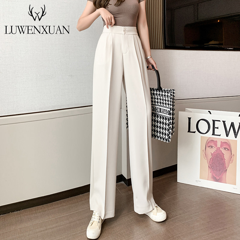 Костюм, тонкие осенние штаны, высокая талия, свободный прямой крой, коллекция 2022