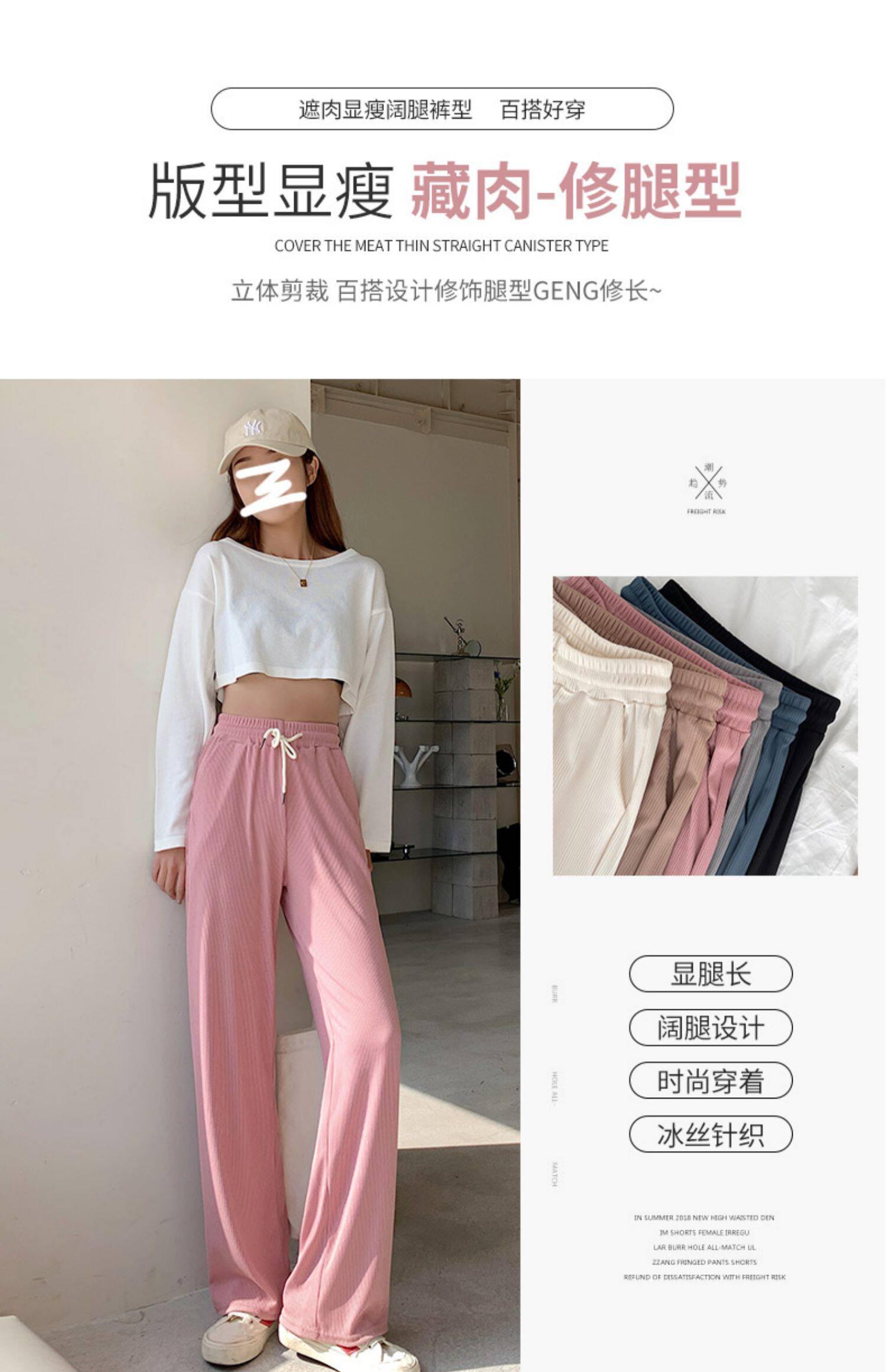 Розовые шелковые тонкие штаны для отдыха, коллекция 2021, высокая талия, свободный прямой крой