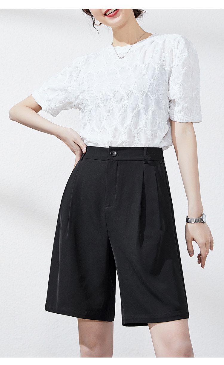 Костюм, шорты, тонкие белые штаны, сезон 2021, высокая талия, свободный прямой крой