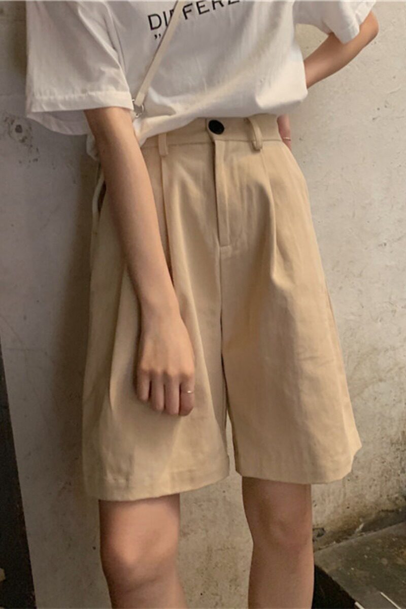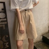 Весенние ретро приталенные штаны для отдыха, шорты, в корейском стиле, коллекция 2021, высокая талия, свободный прямой крой