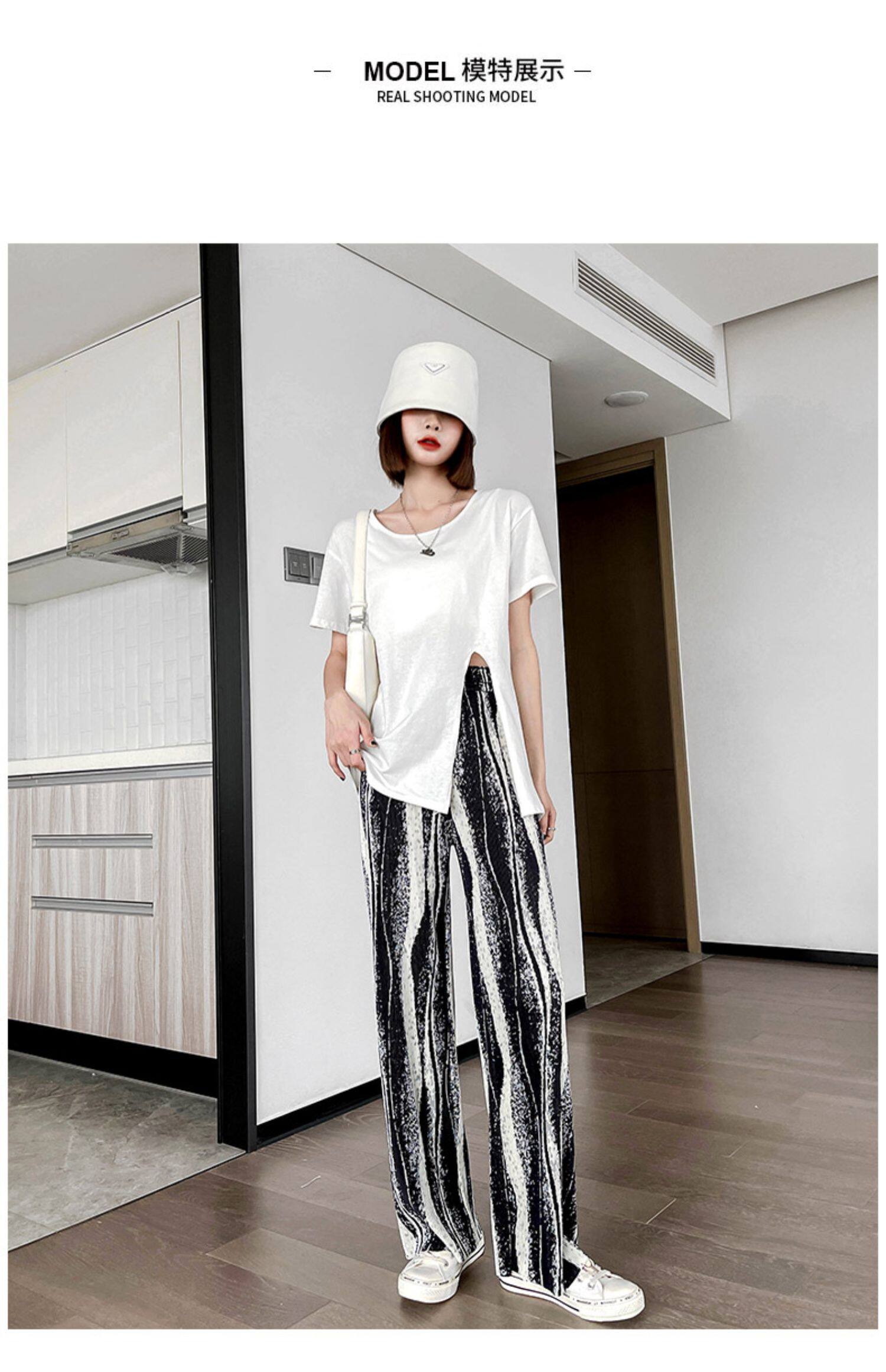 Тонкие шифоновые штаны для отдыха, коллекция 2021, свободный прямой крой, высокая талия