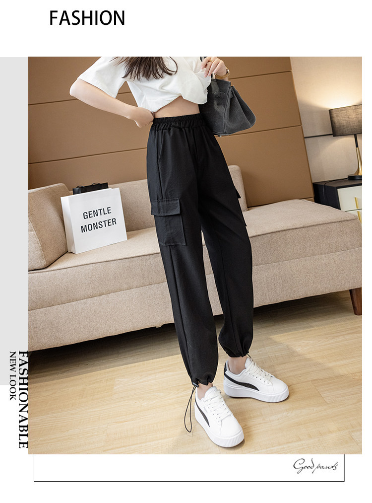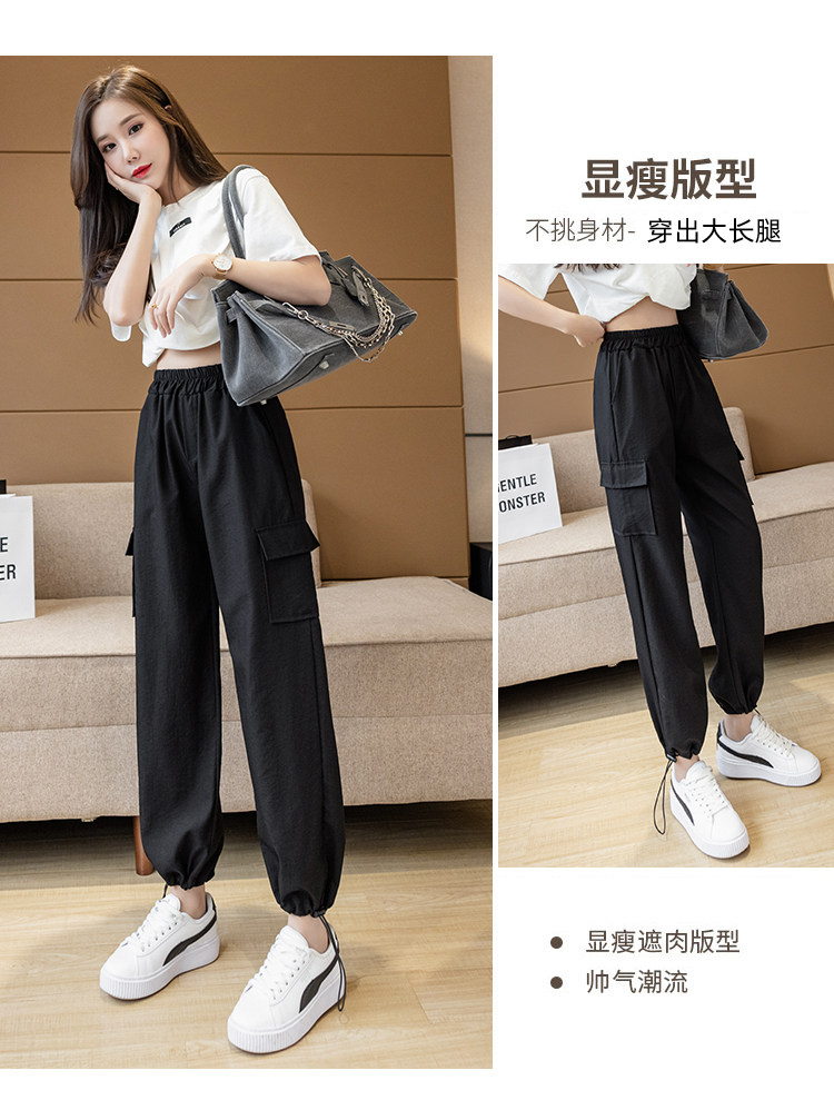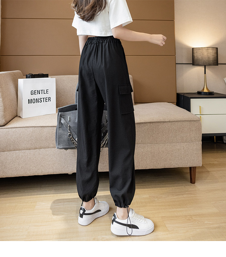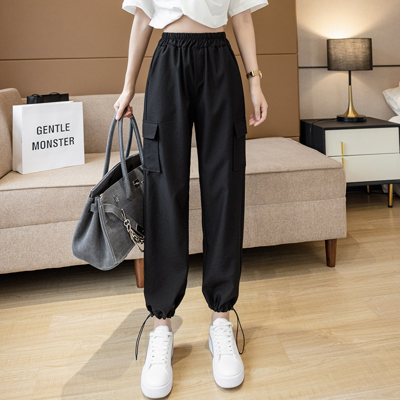Черные тонкие штаны для отдыха, из хлопка и льна, подходят для подростков, высокая талия